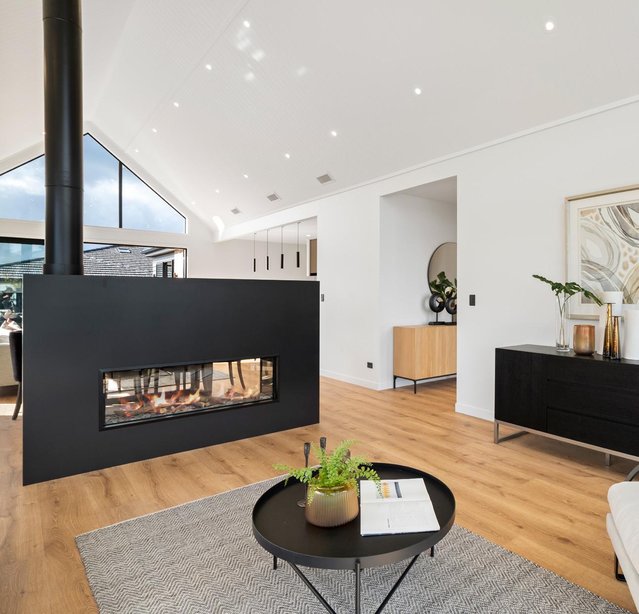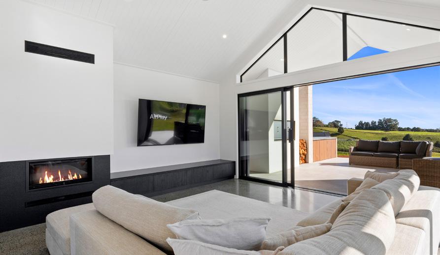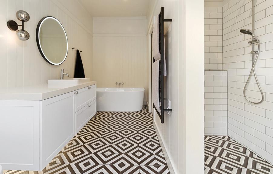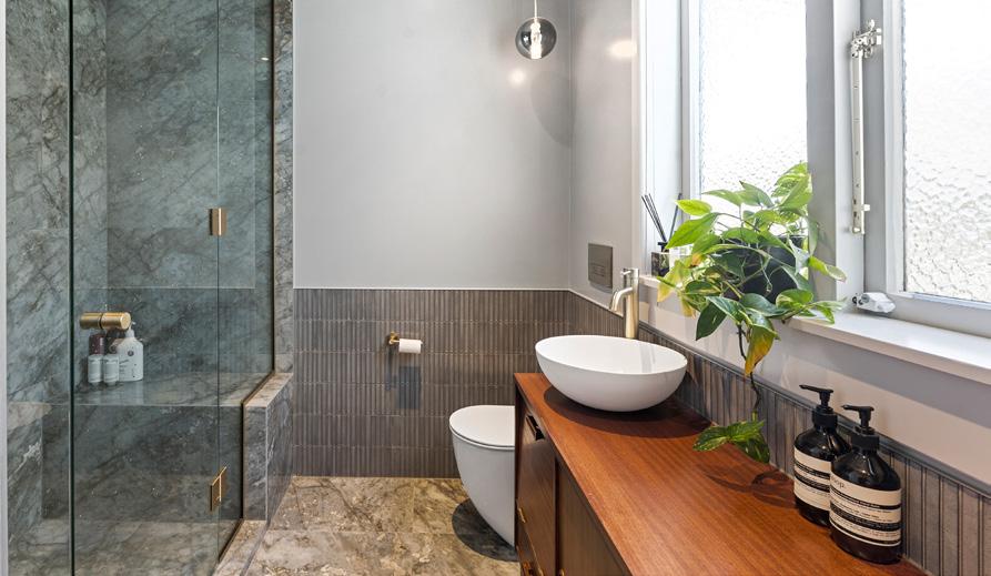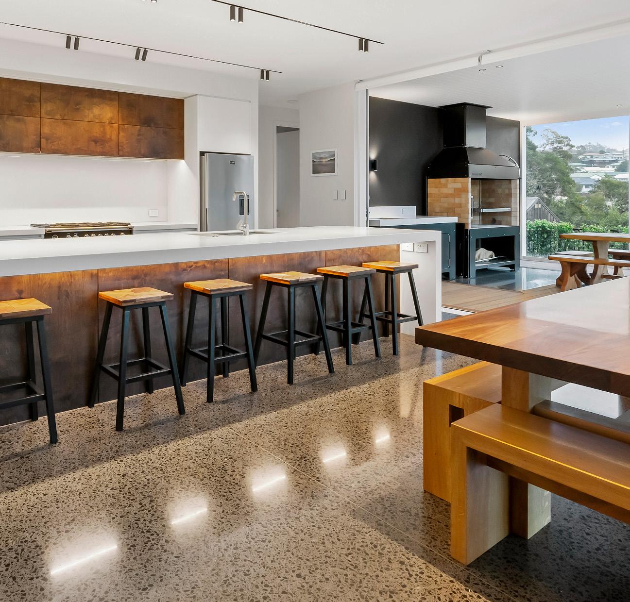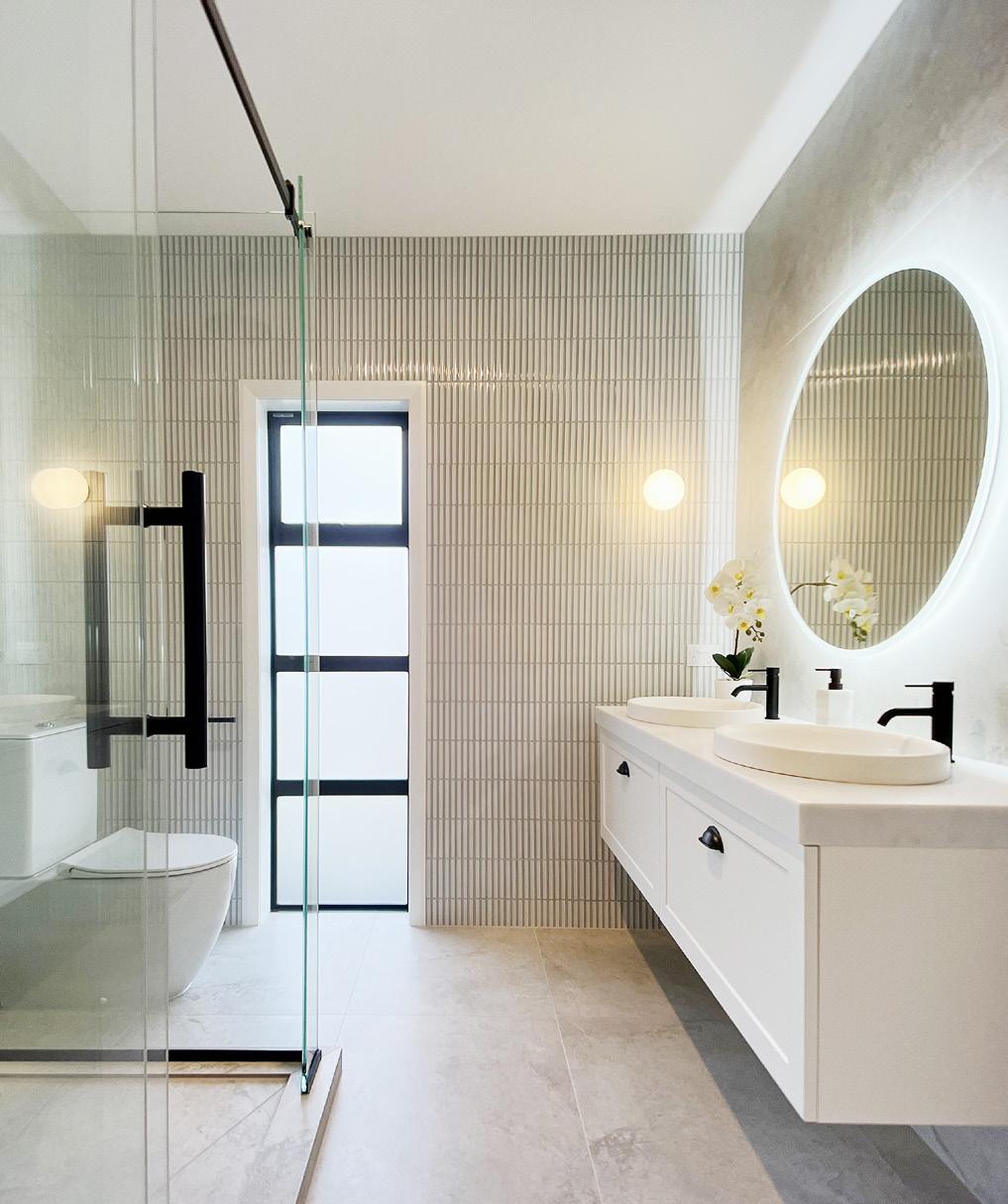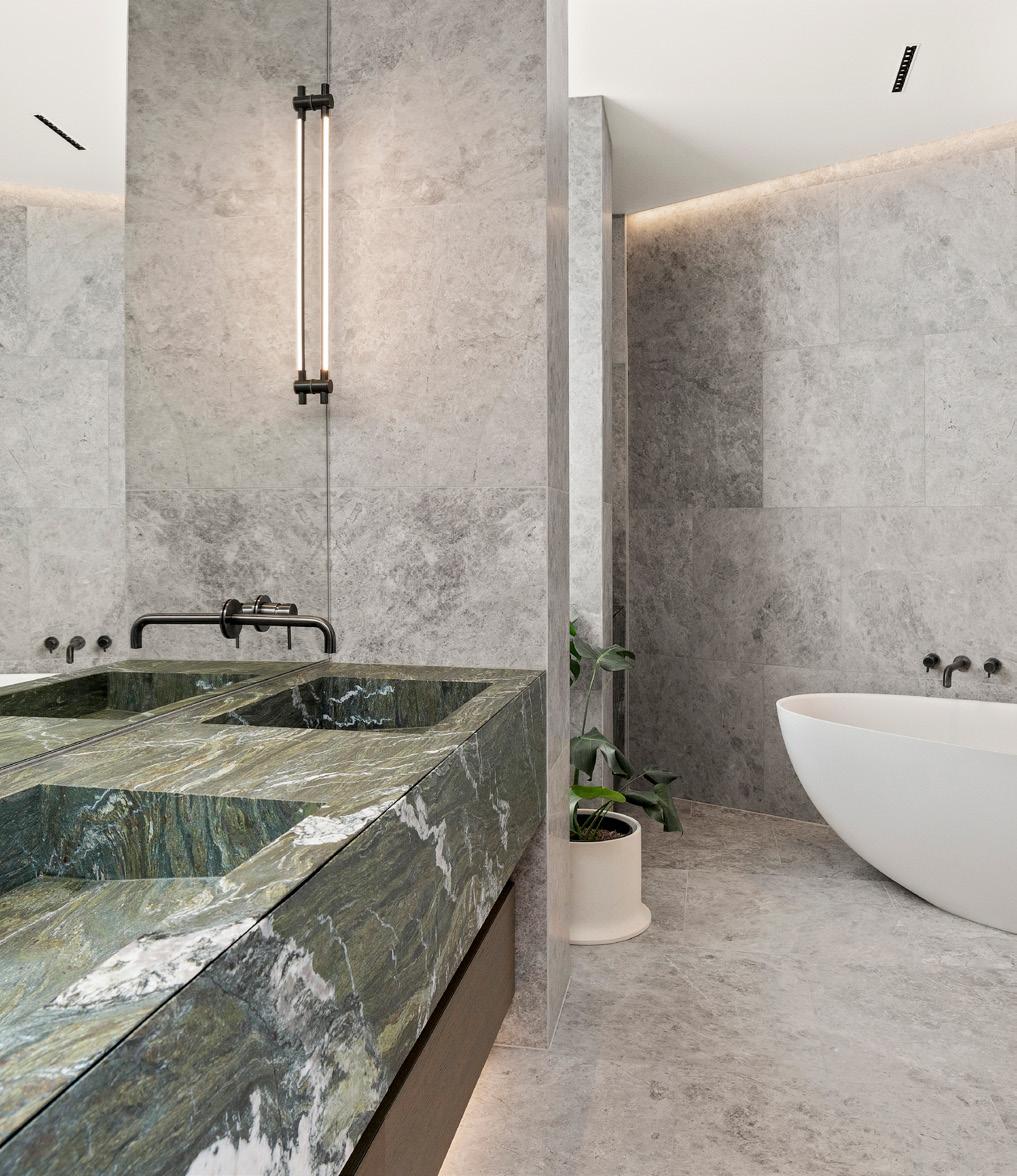 New life was also breathed into the existing side patio, which was given a new timber-framed louvre roof and hanging fireplace. All three bathrooms received the luxe treatment with Venetian-style plaster render and top-ofthe-range cabinetry and tapware. It’s all flawless and opulent now, but this was a highly technical project