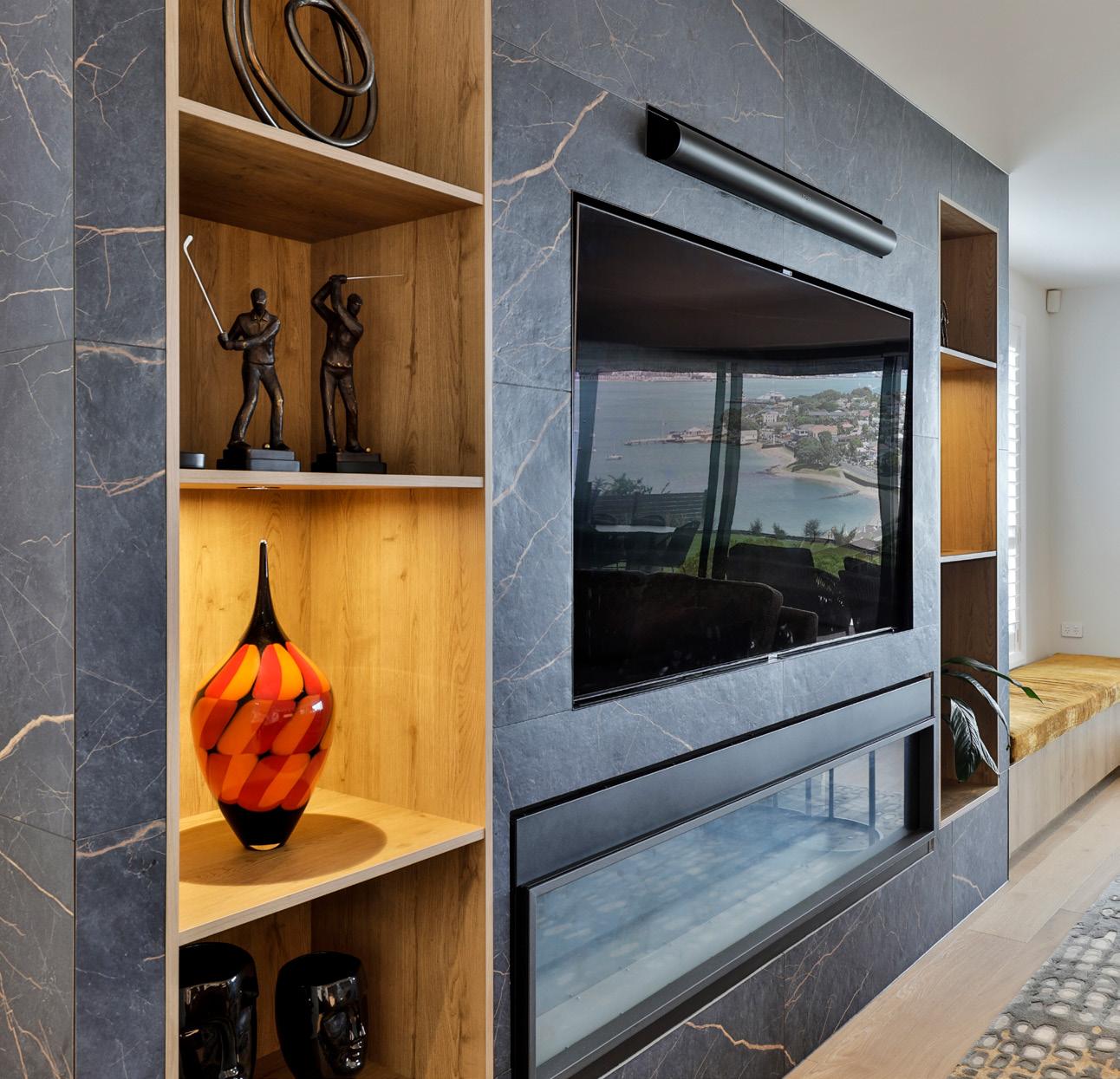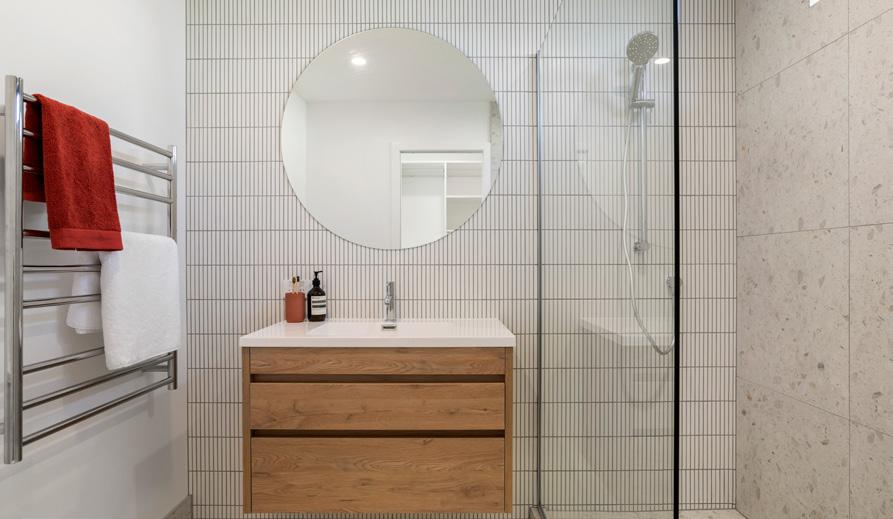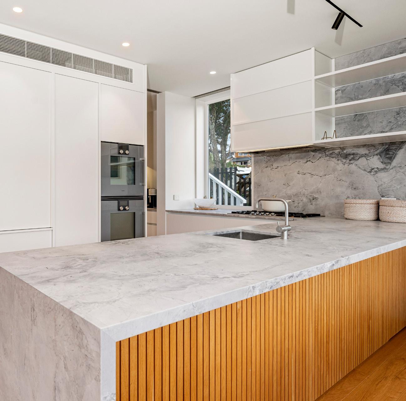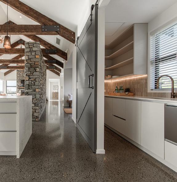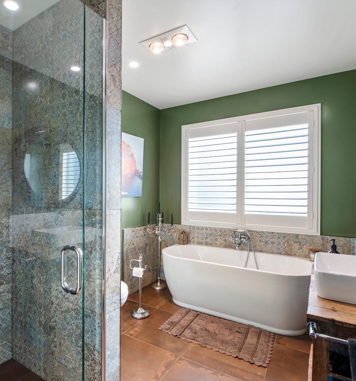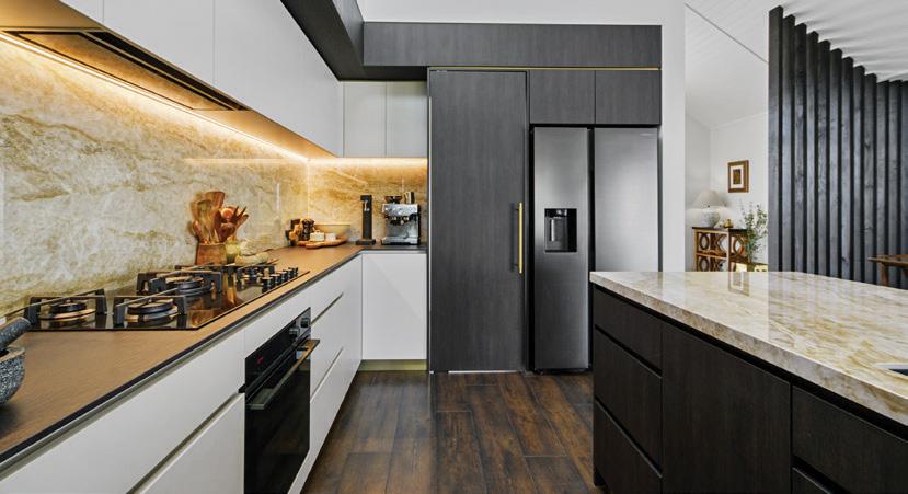 New life was also breathed into the existing side patio, which was given a new timber-framed louvre roof and hanging fireplace. All three bathrooms received the luxe treatment with Venetian-style plaster render and top-ofthe-range cabinetry and tapware. It’s all flawless and opulent now, but this was a highly technical project