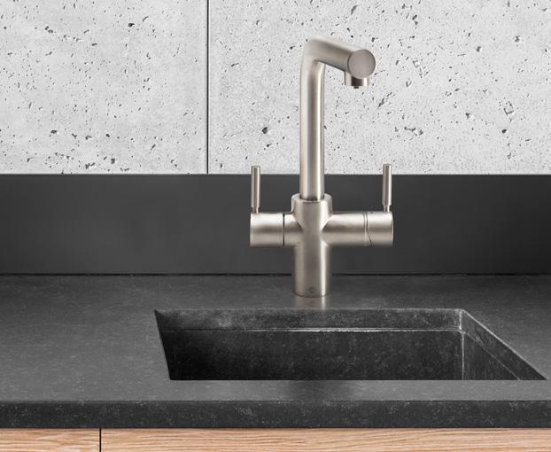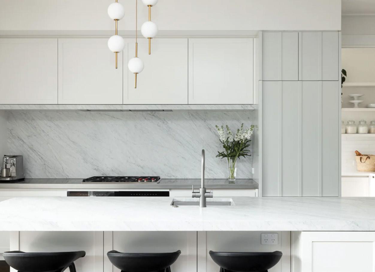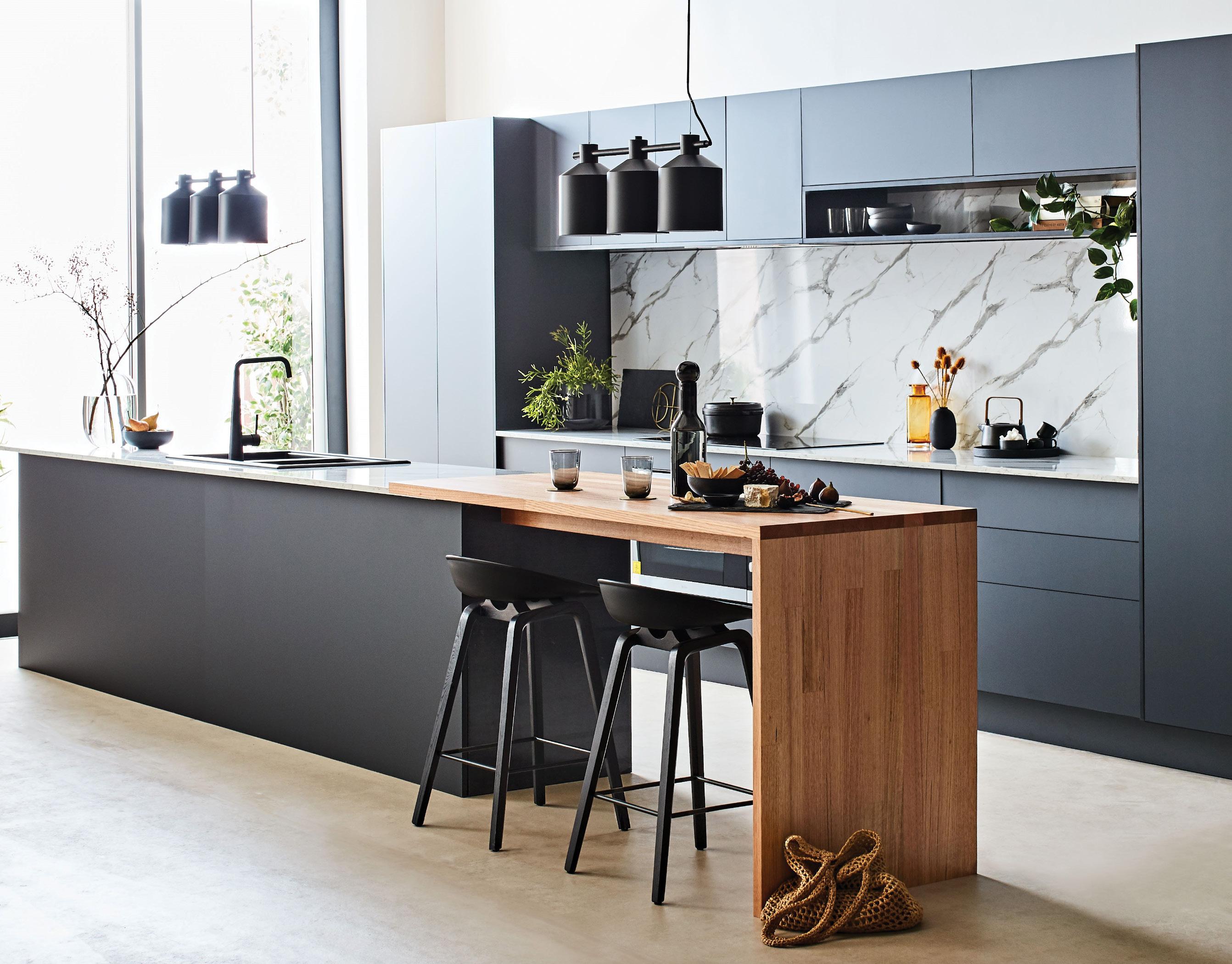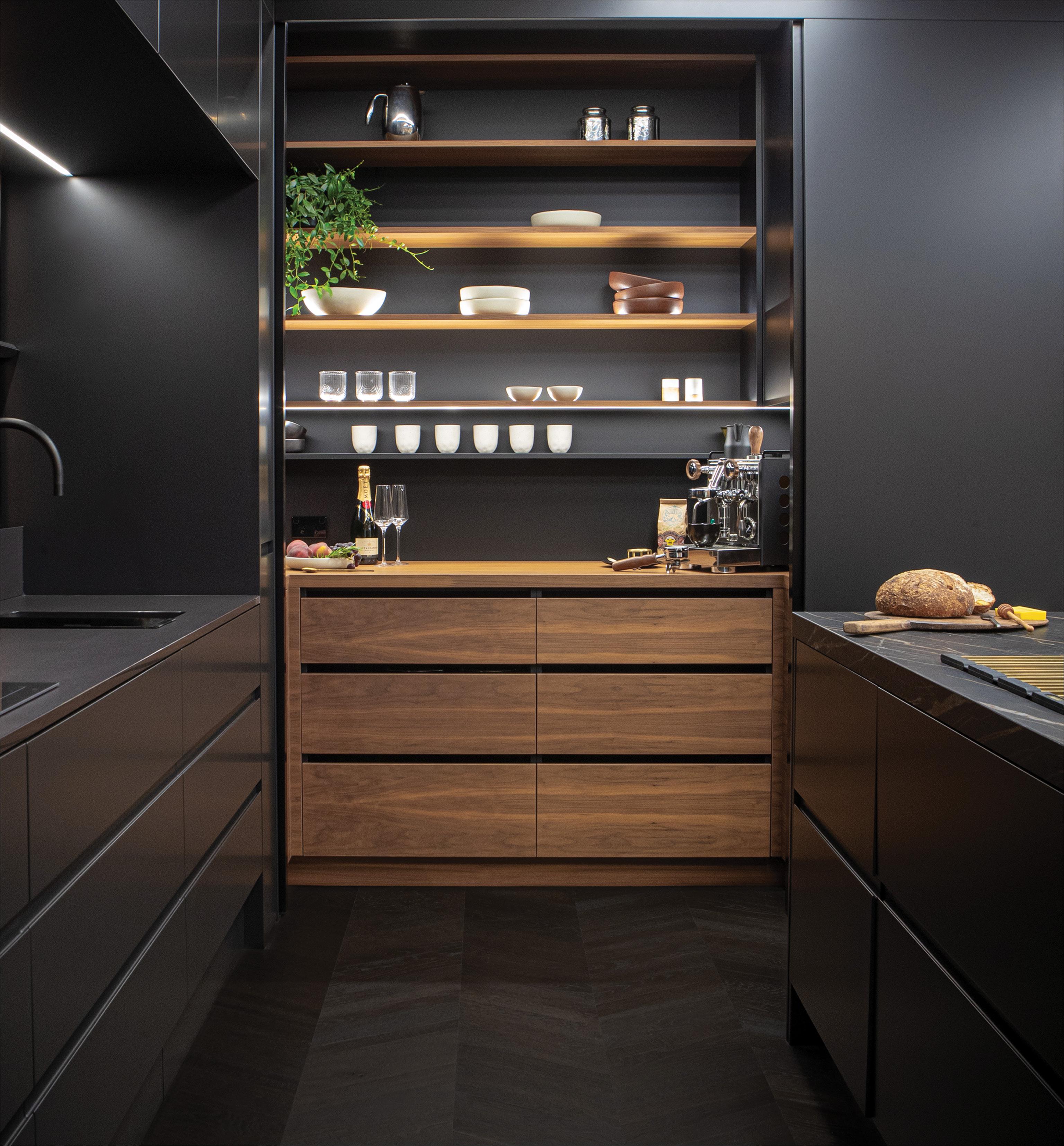 Whether it’s a flambéed dessert or a dish that’s garnished with a flourish, a touch of theatre never goes awry with food. The same idea applies to kitchens where luxurious fittings create a bit of drama and make eating and cooking that much more enjoyable. Think swathes of statement stone, natural timber in flooring and cabinetry, and tapware in metals with vintage finishes like aged iron and brushed nickel. Layering different levels of sheen in the room, such as matte-painted cabinetry paired with shiny stone and reflective glassware or lighting, creates visual interest and decadent comfort. Interior and kitchen designer Kathrine McDonald says