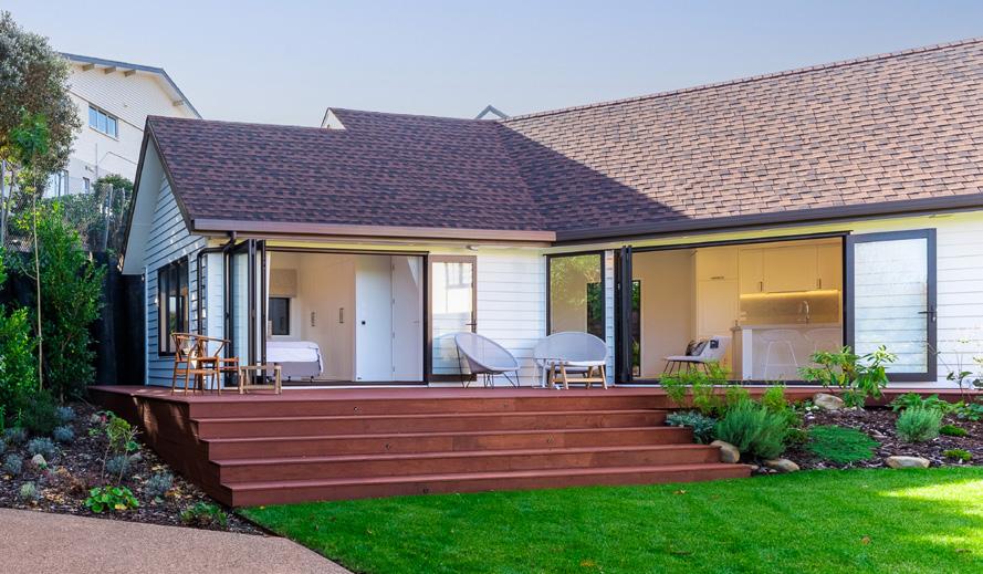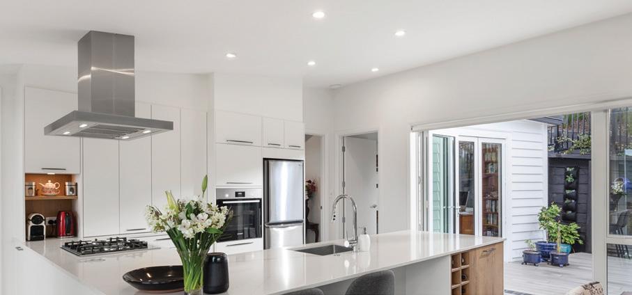 Although the renovation was extensive, it hasn’t overwhelmed the original home. It’s still a pretty fourbedroom, three-bathroom bungalow with super-cute street appeal... only now there’s a whole lotta extra living going on at the rear of the property. For more of this house go to houseoftheyear.co.nz
