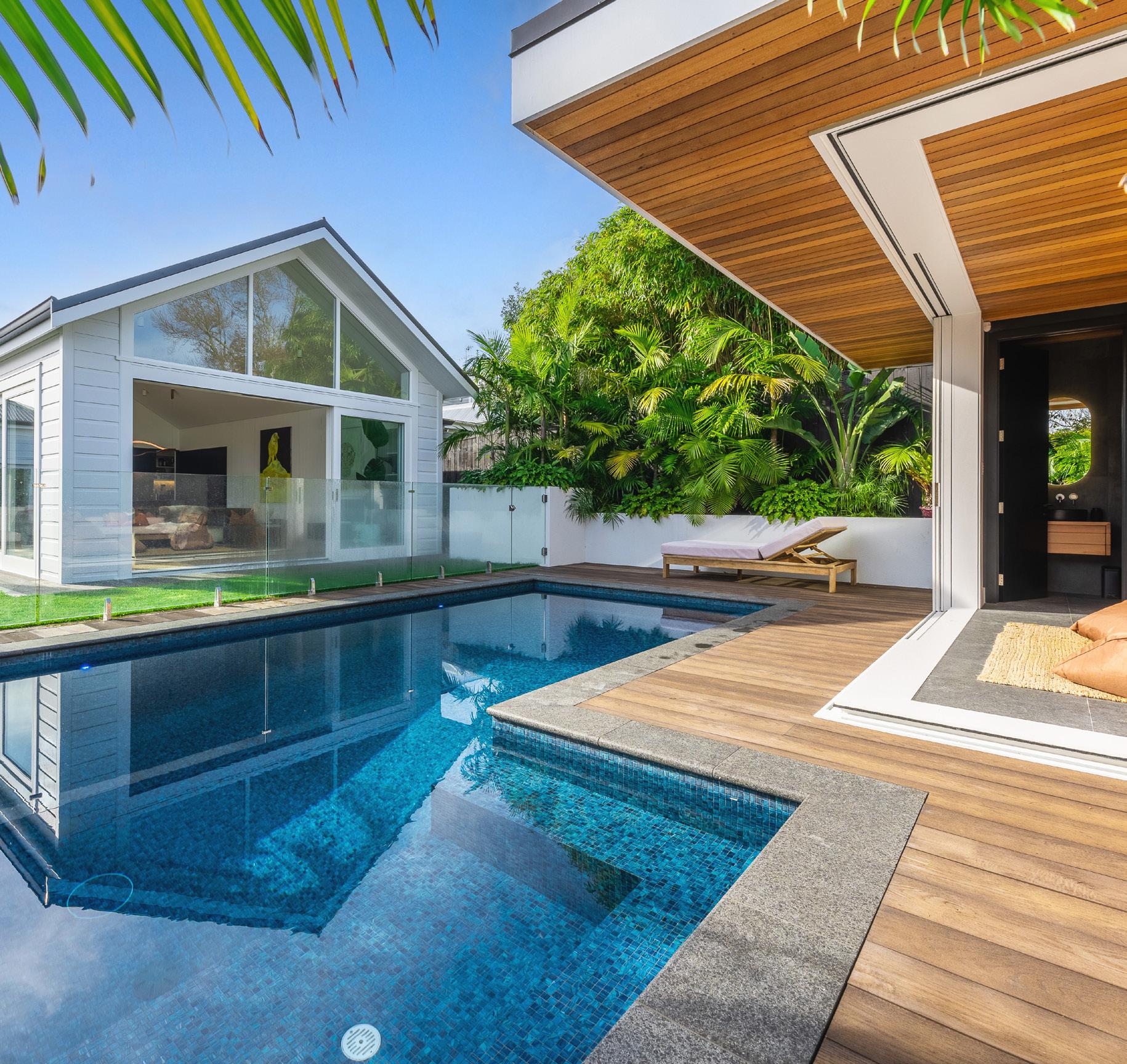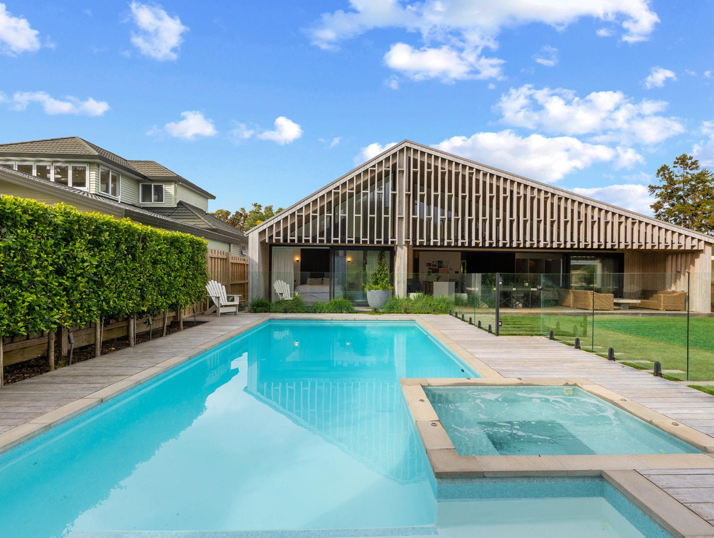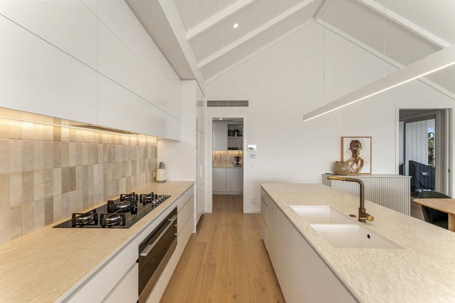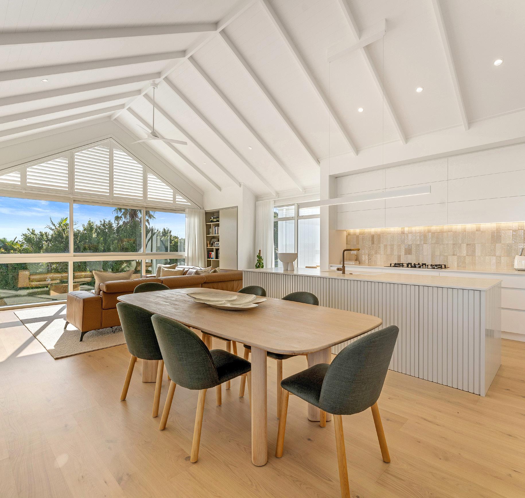 Every season is party season thanks to the ultra-modern extension of this 1920s bungalow. This beachside home now boasts celebrity-level open-plan living, a temperaturecontrolled wine cellar, multiple party zones with built-in fireplaces, an outdoor entertaining area and a lap pool. During the renovation, the home’s unassuming facade was preserved and enhanced, amplifying the building’s street appeal, but the true magic lies in the ultra-modern