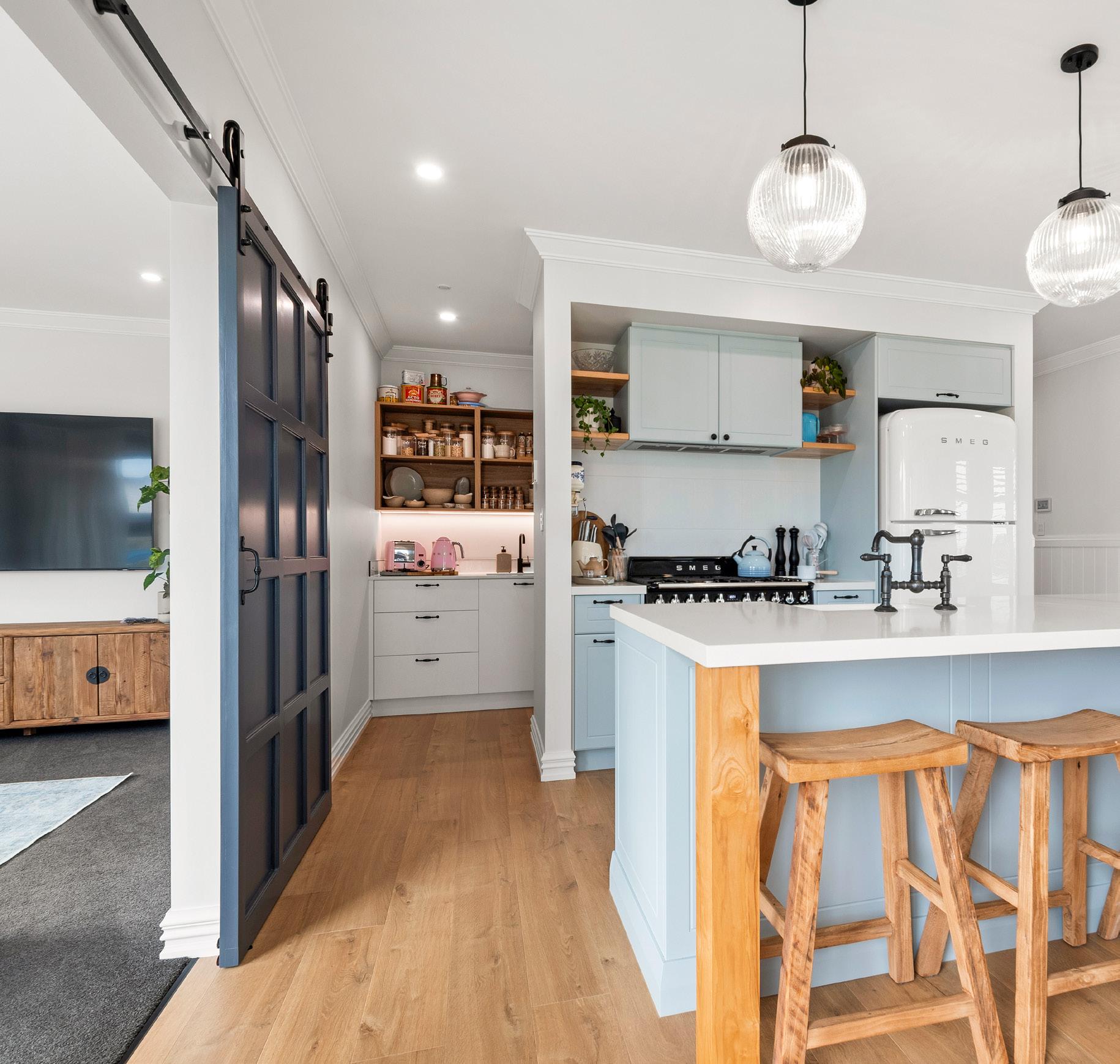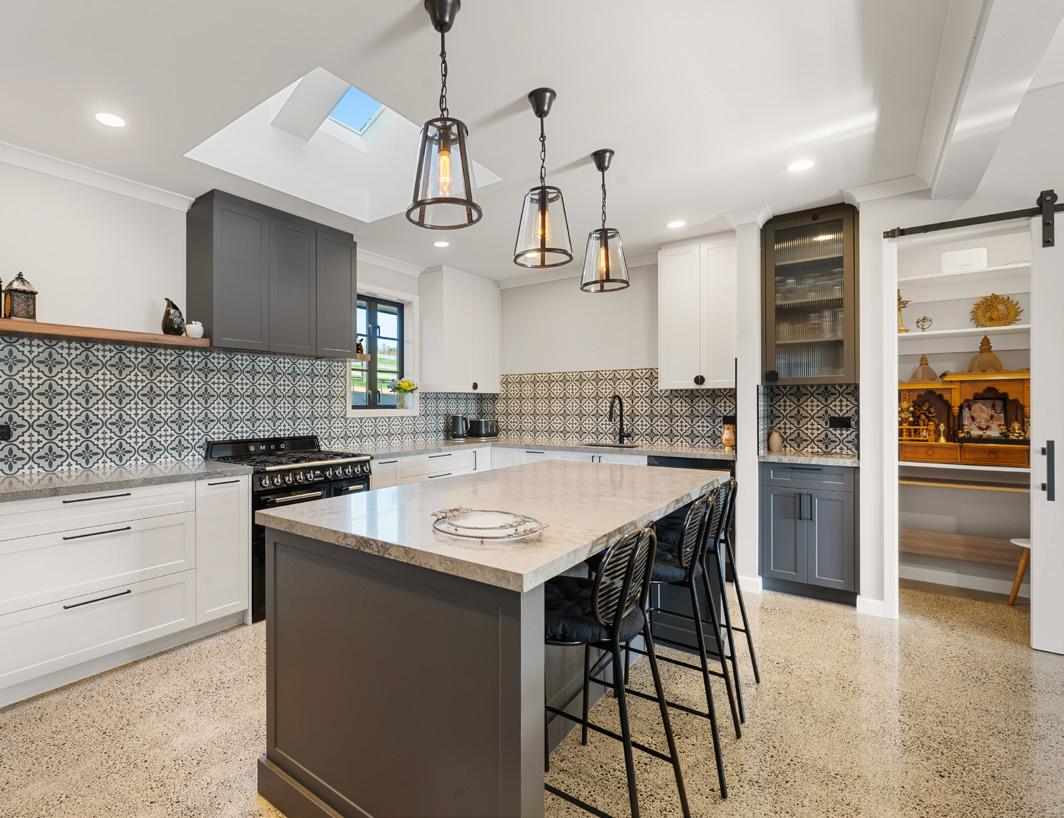 From the street it appears as a beautifully maintained early-1900s villa. Step inside, however, and it’s apparent carpentry wizards have been hard at work. Where to start? At the beginning, with a three-bedroom, one-bathroom house with a self-contained flat beneath. Enter Norwest Build armed with architectural renovation and extension plans, and top-shelf skills. This sensitive introduction of modern luxe elements into a character home is a template for how to meld the old with the new. This 263sqm city-fringe house now has four bedrooms, two lounges, an entertainment room, three bathrooms and main-bedroom ensuite. The icing on the beautiful
