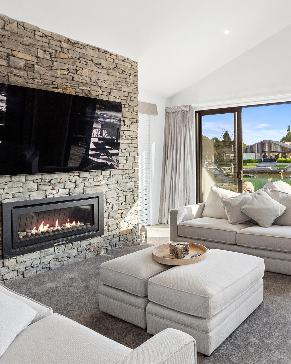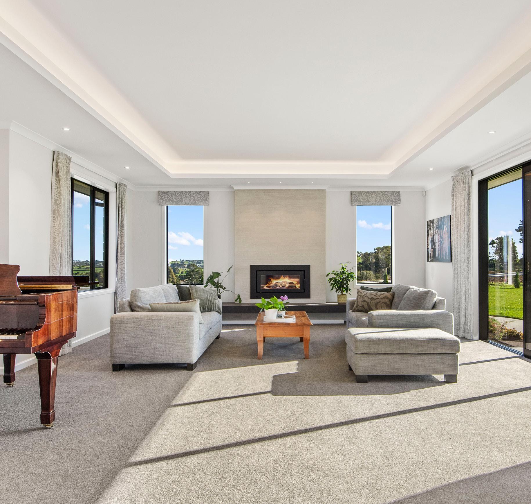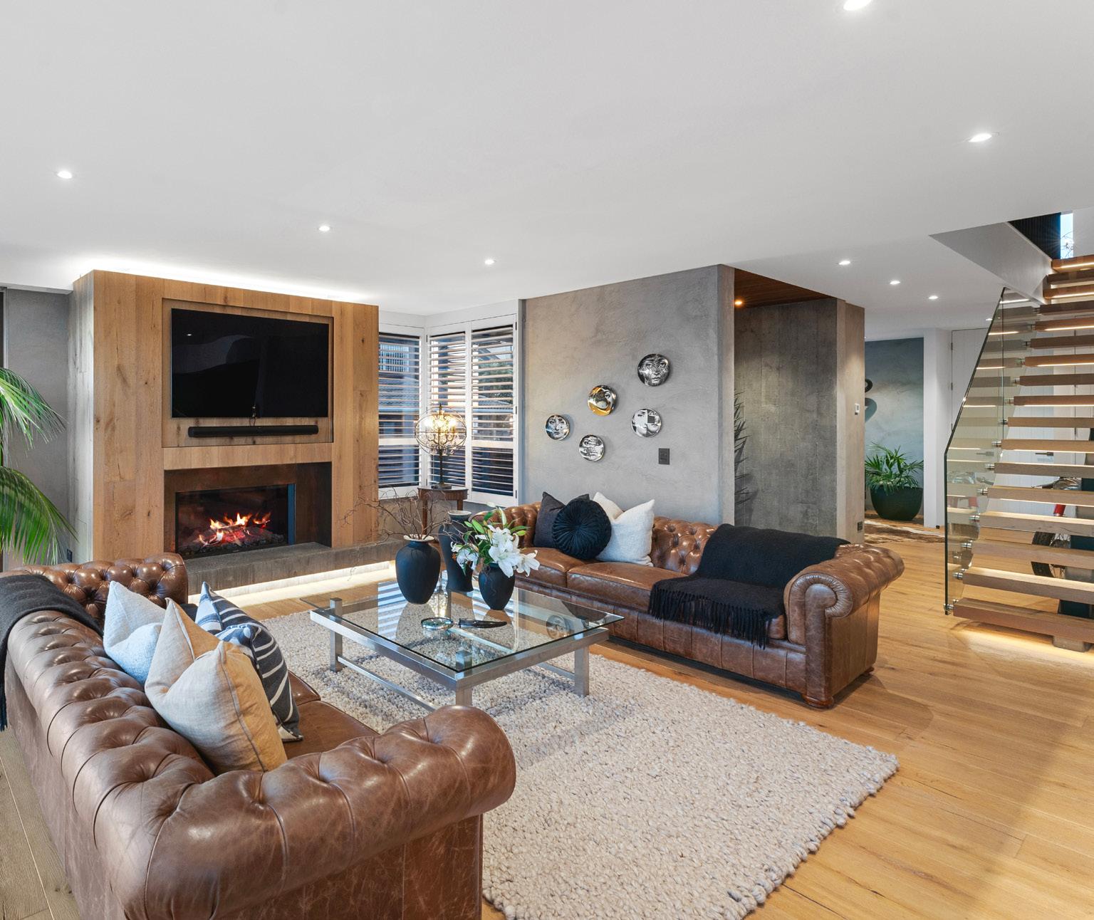 Multiple living zones, each equipped with a cosy fireplace, provide the space for supersized shindigs.