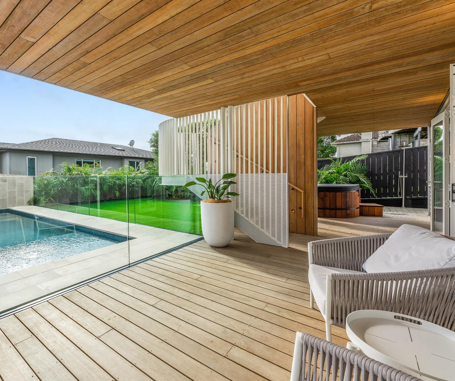there are two rosewood decks and verandahs sprawling over 50sqm including a fireplace, and a courtyard.