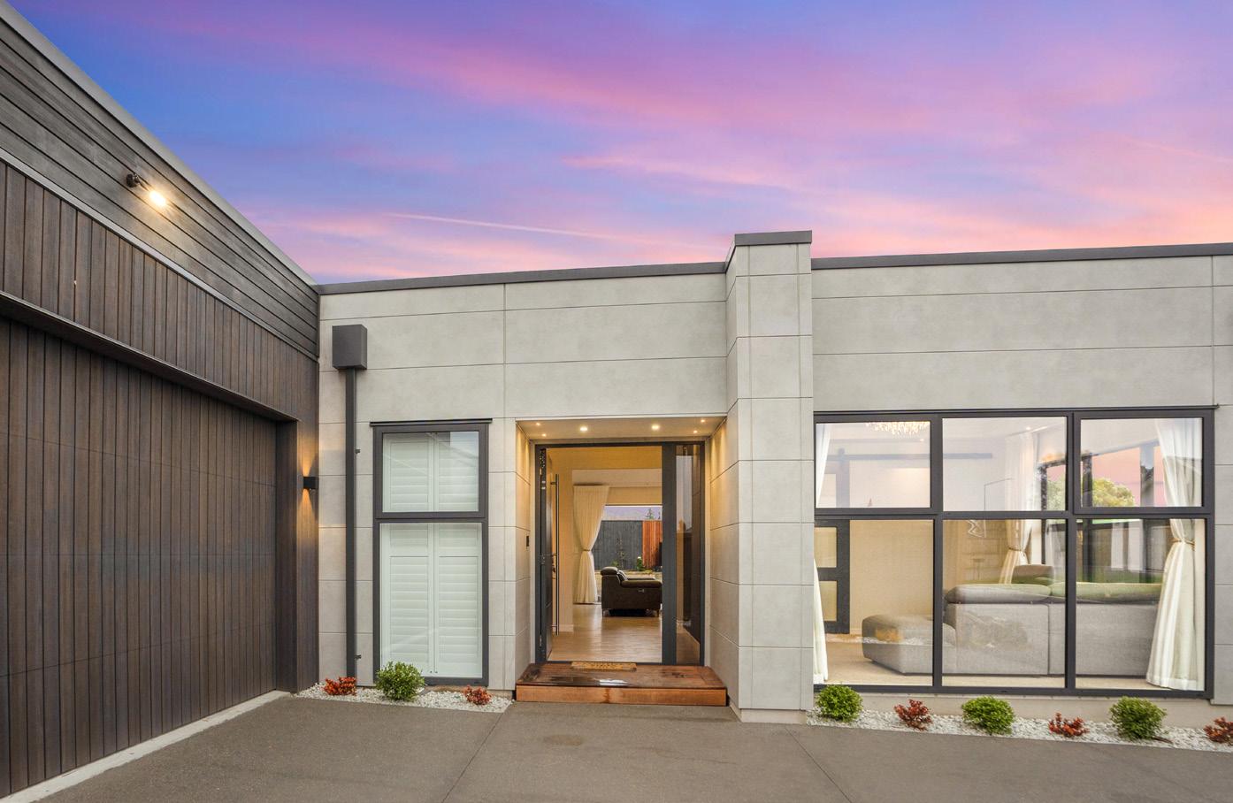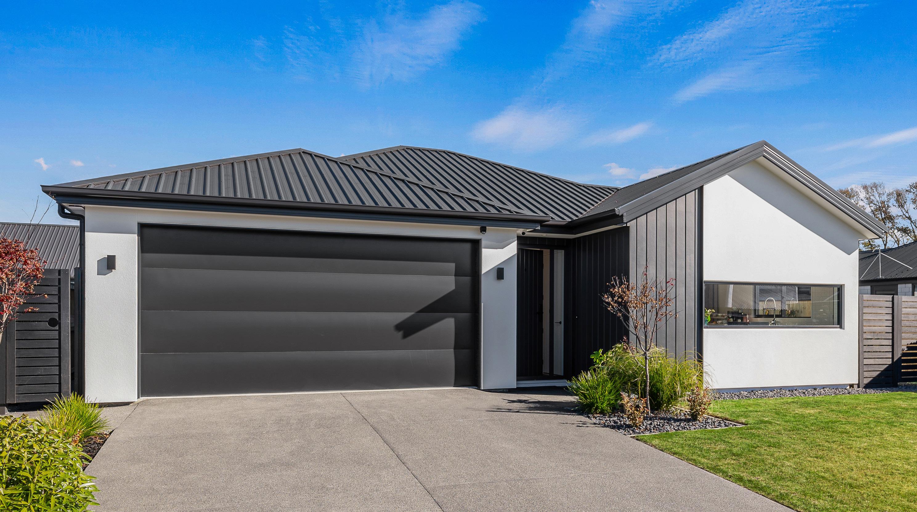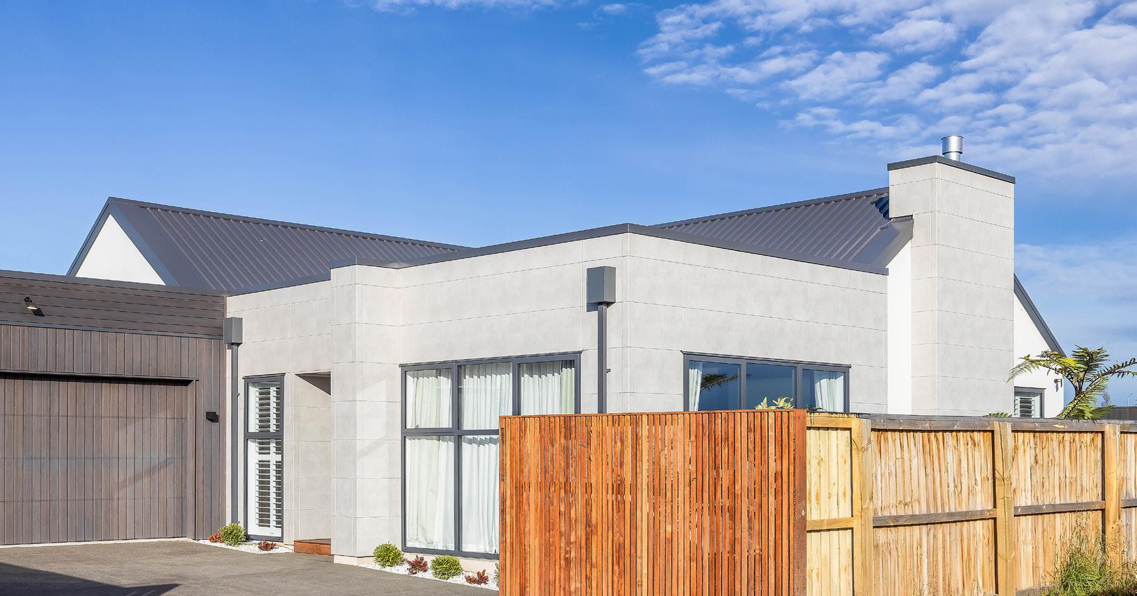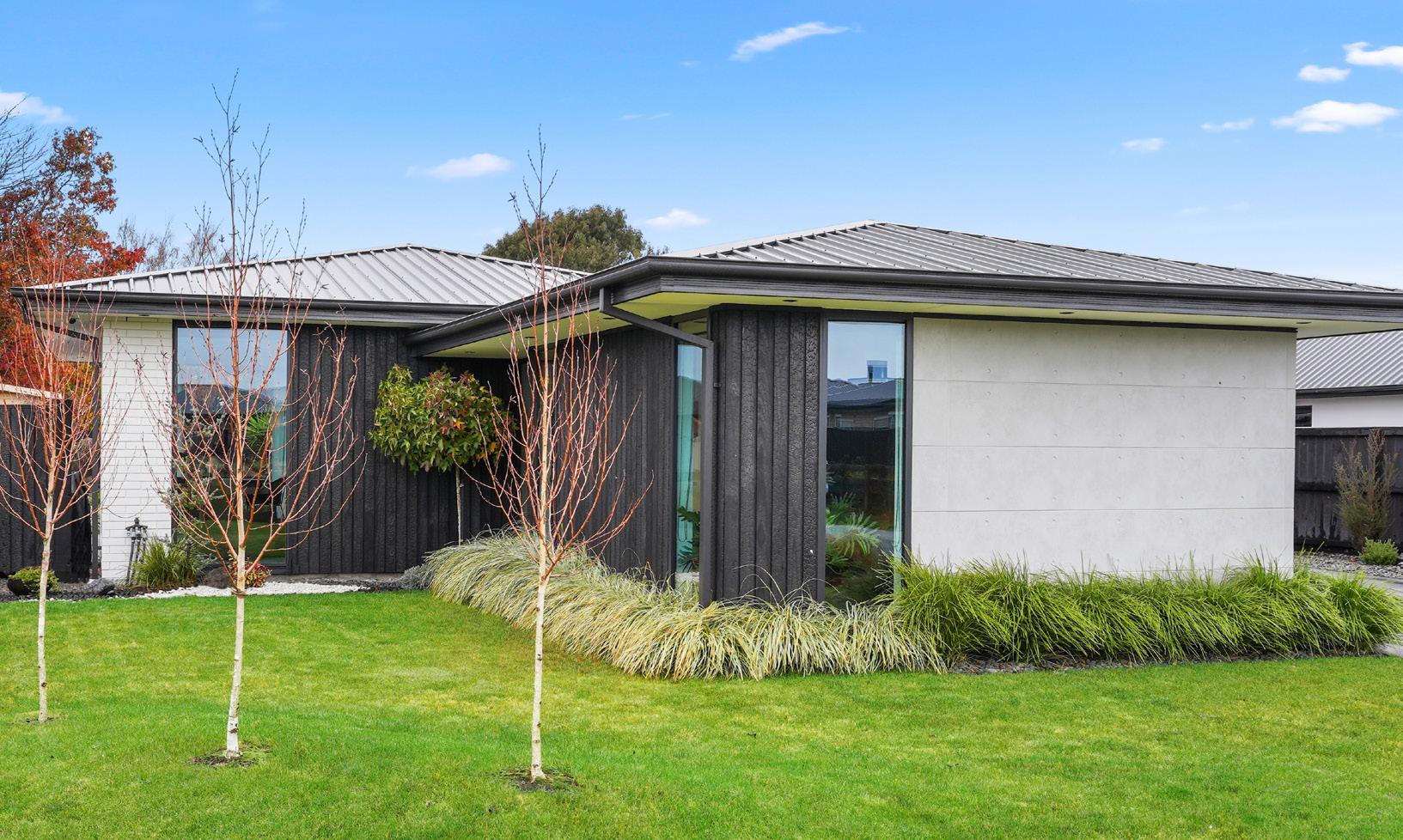 To the west, the living areas open out to a generous deck and unobstructed views over South Shore to Kaikōura. To the east, a media room and primary bedroom suite occupy the upper level with three additional bedrooms and services below.