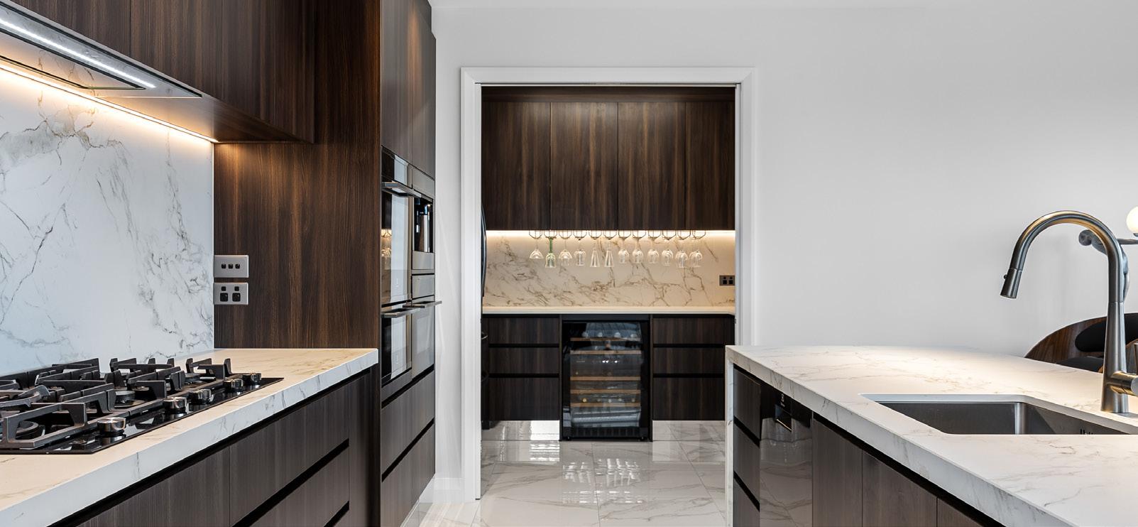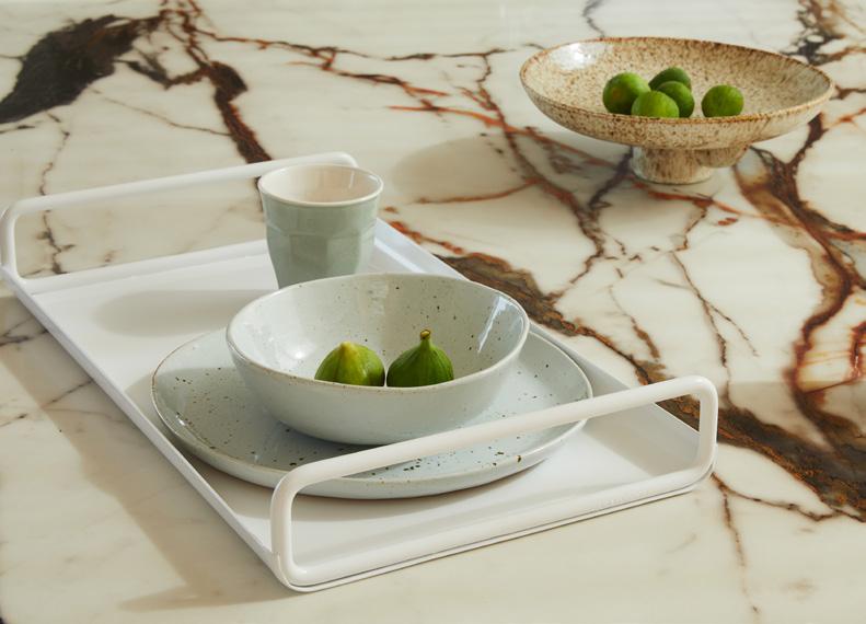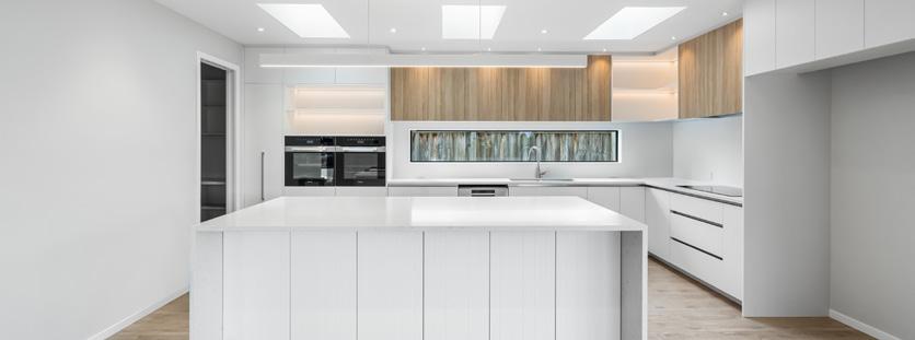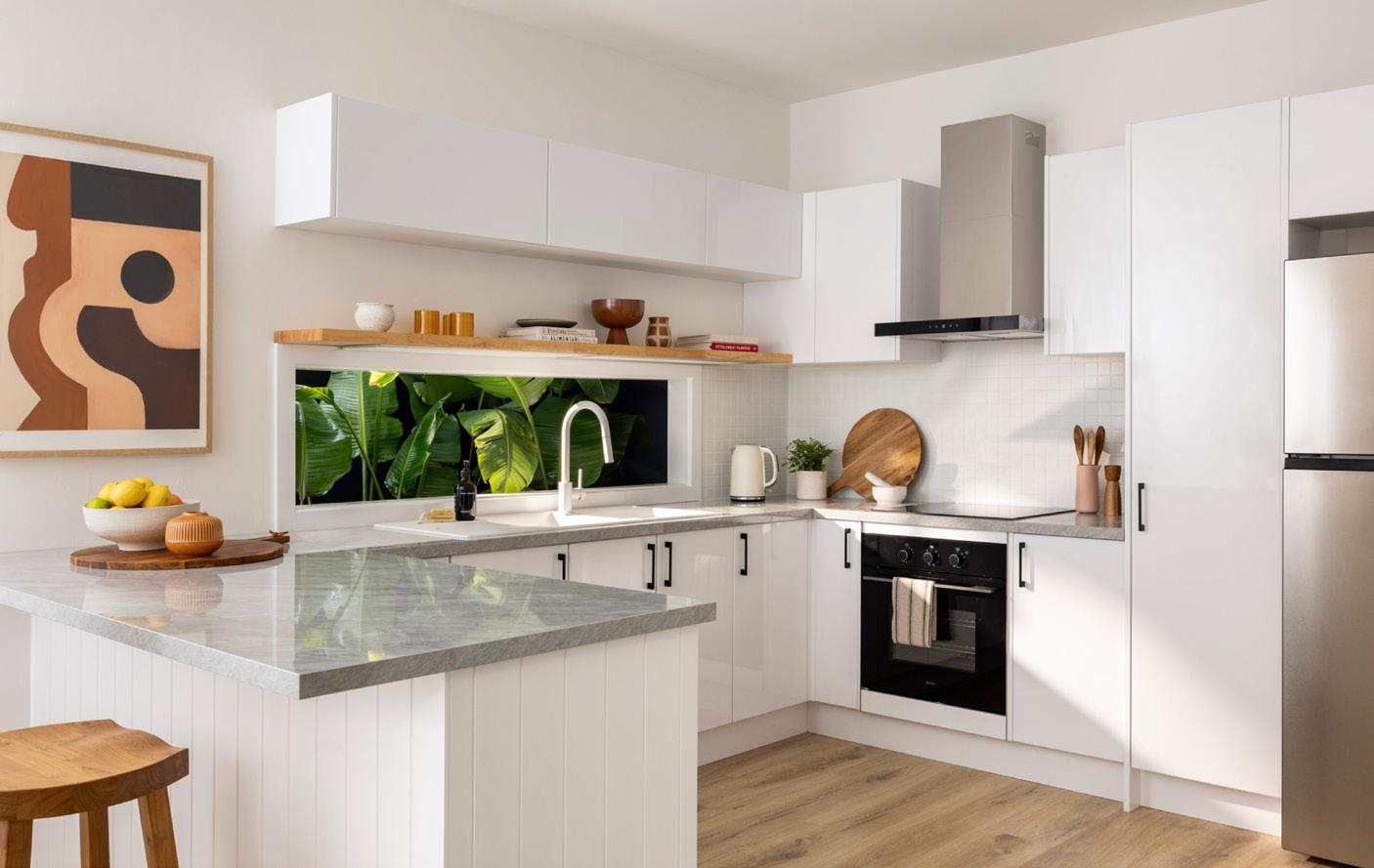 Add a sense of individuality to a clean-lined kitchen with open shelving and artfully display your favourite items. The key is to group pieces together such as your favourite plates alongside elegant glassware, or your favourite cookbooks beside a plant. It’s not a place for clutter, however!