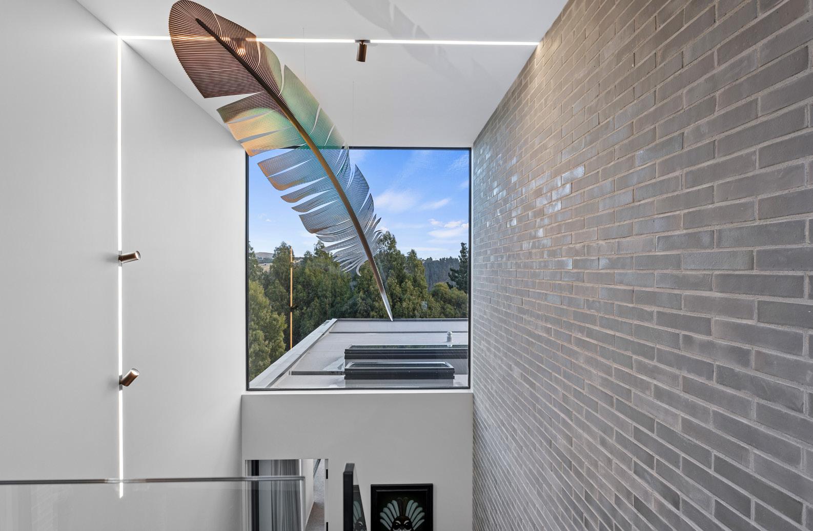 A hall skylight overlooks a beautifully landscaped courtyard, and there’s a wine cellar in the main hallway with back-lighting.