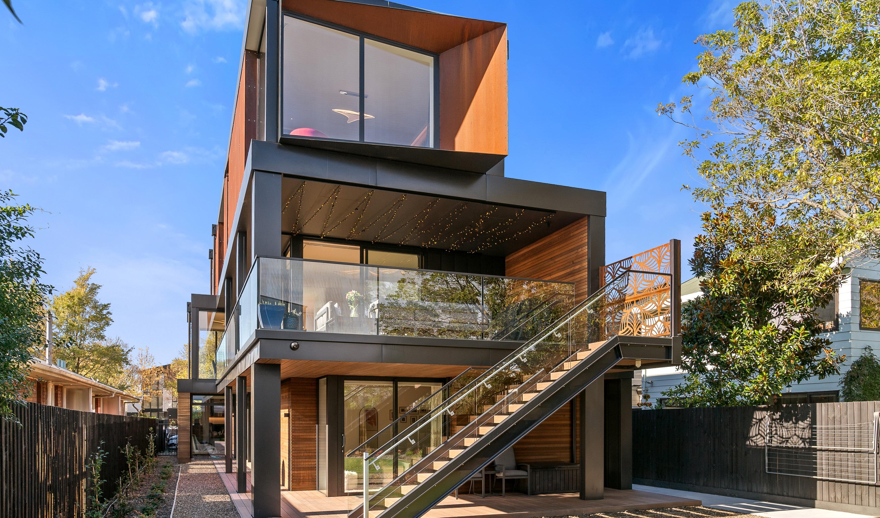 Challenged by steep topography and a narrow, winding road, this build sits pretty on Clifton Hill.