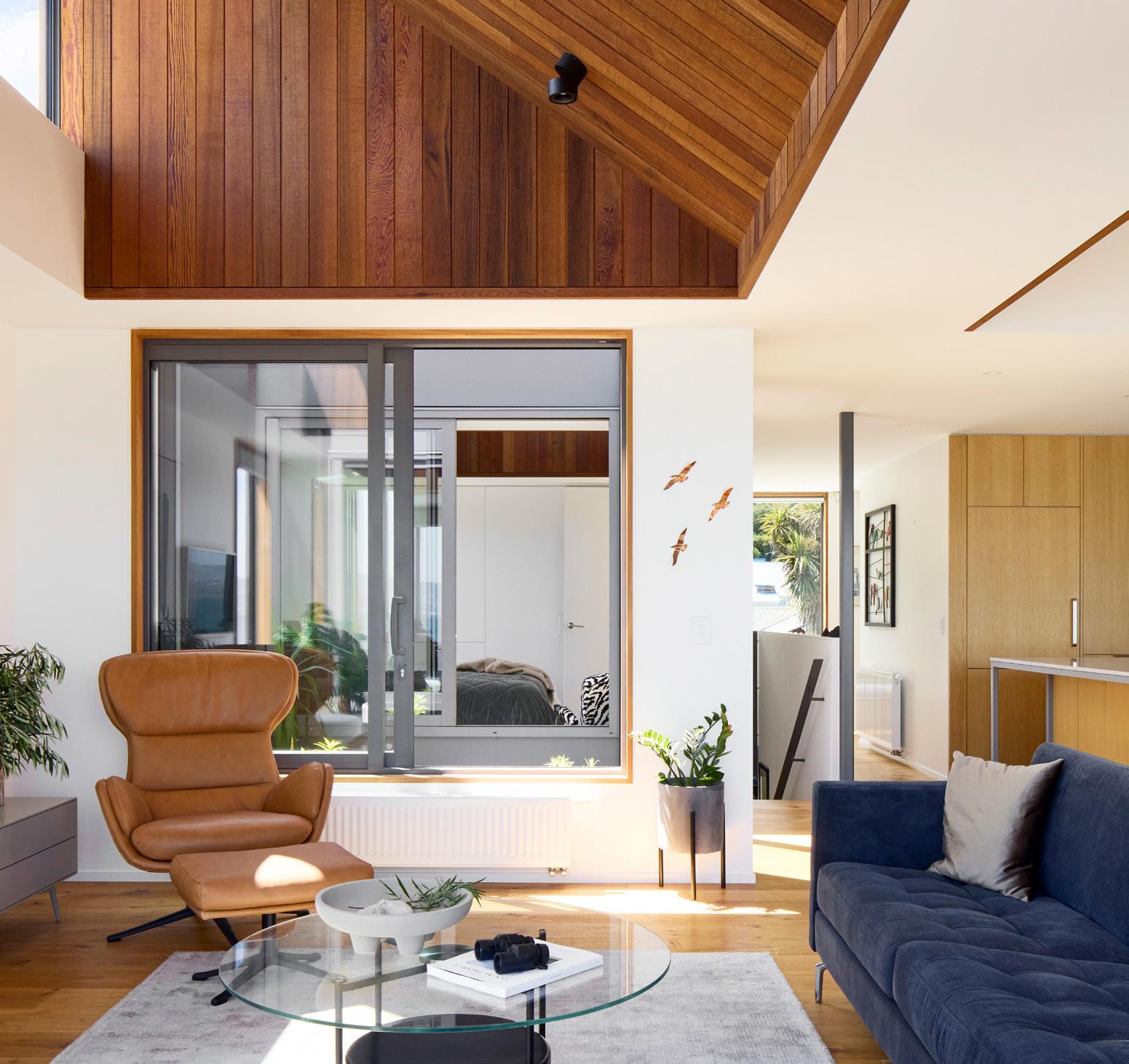Clever design meets home comforts in this 189sqm family home in Hutt Valley. Every detail has been thought through, including the fact the four-bedroom, two-bathroom house is on a busy street. Both internal and external walls have extra acoustic and thermal insulation resulting in the house being quiet and cosy. Double-glazed aluminium alloy joinery provides an extra layer of snugness.