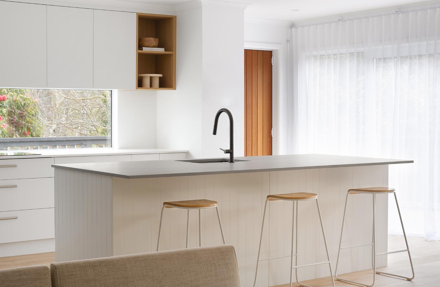 The 164sqm single-level home deftly balances laidback Kiwi living with flourishes of French-romantic style, contemporary cool with a certain je ne sais quoi Open-plan living stretches almost the length of the