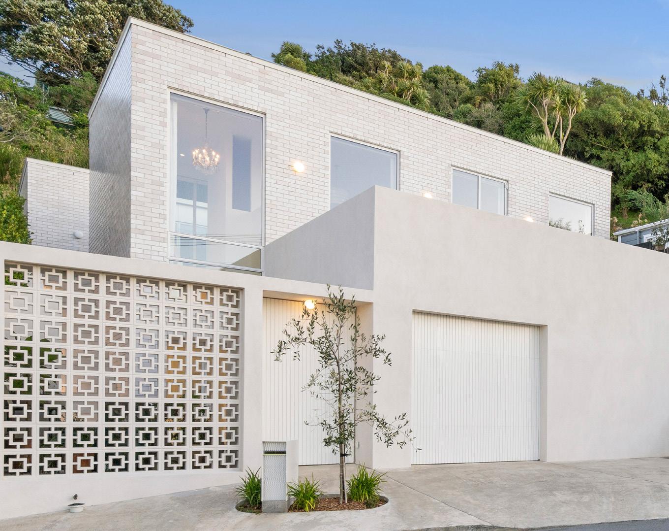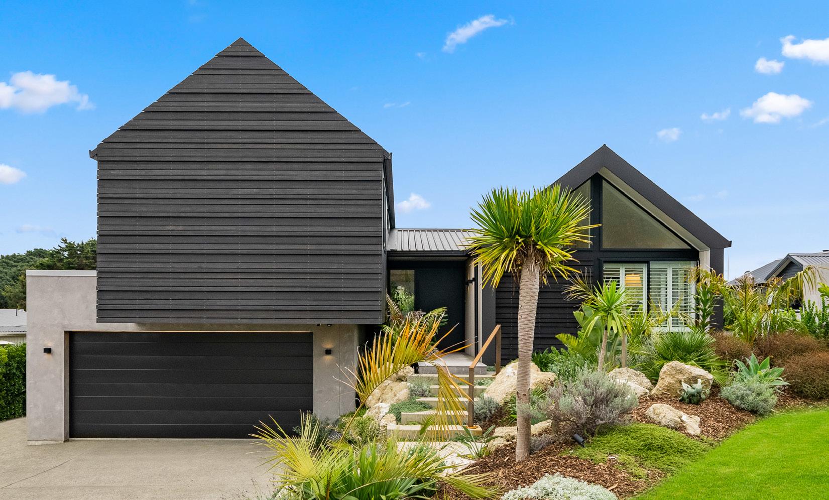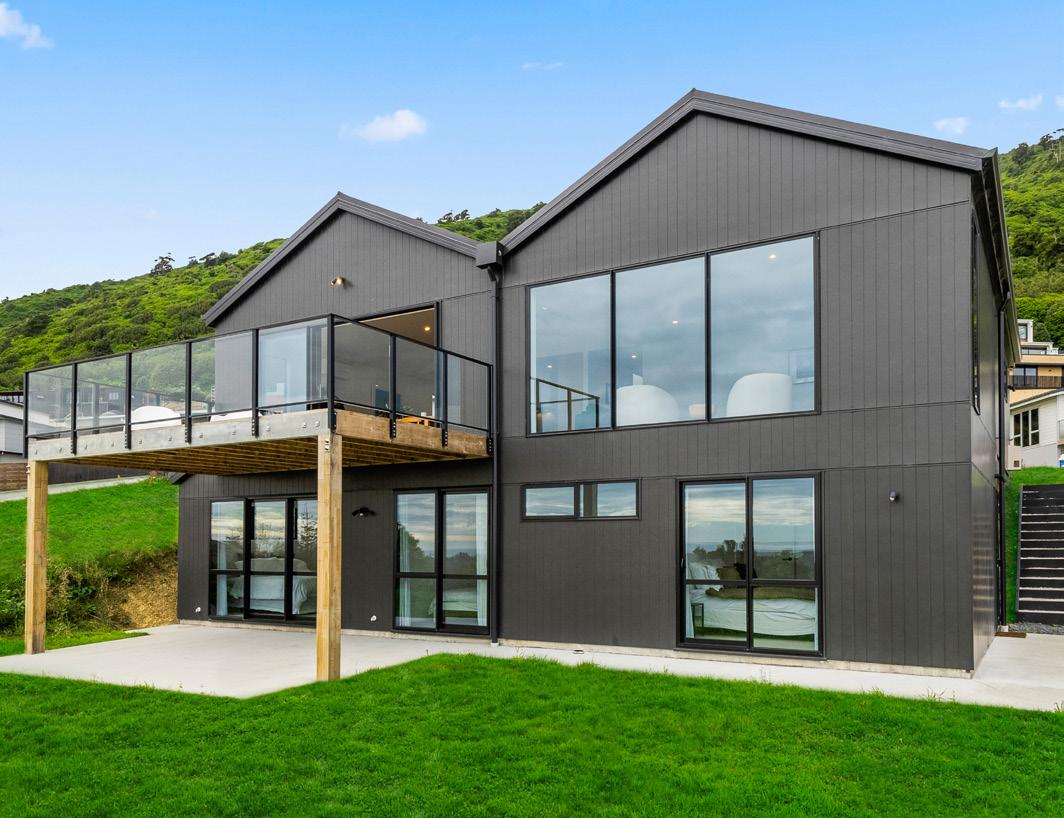 Panoramic sea views and undeniable street appeal are just two reasons to love this elevated home with twin gables and bags of style. Two strong pitched forms with dark shiplap-look cladding set the house apart and augur good things to come, including vistas of Kāpiti Island. Venture inside and you immediately see how the 222sqm home has been cleverly designed to harness the
