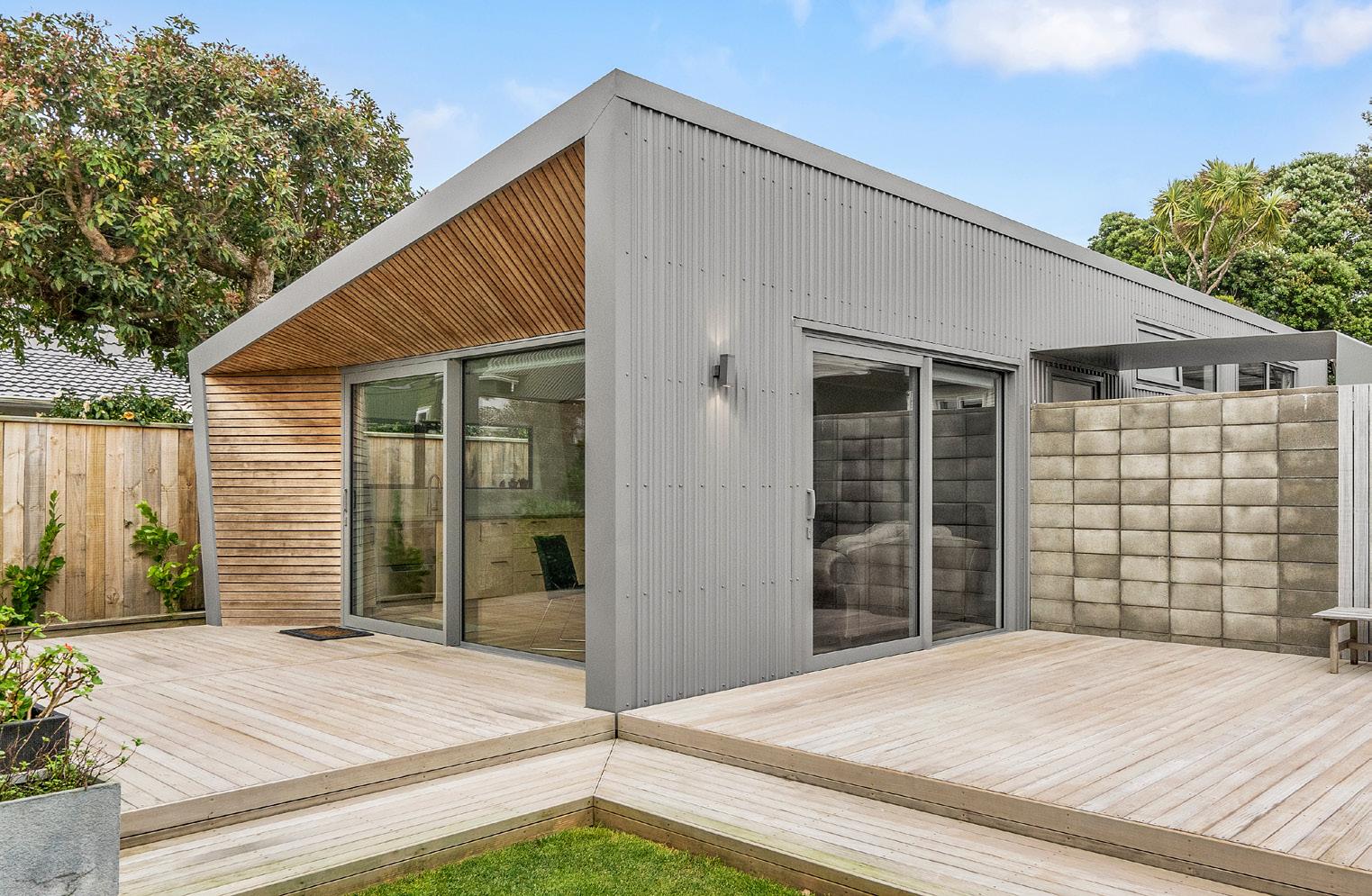 Compact enough to be classed by some councils as a minor dwelling, this two-bedroom home is still big on living, with two large decks to the north and west to capture the afternoon sun. There are many space efficiencies like the one-wall kitchen, with ample cabinetry and long benches, and clever storage throughout that means uncluttered bedrooms can still feel generous. This little beauty is designed to withstand a few bumps from renters with hardy vinyl flooring and a stylish tiled bathroom. It’s also built to endure the elements — the Abodo engineered timber and Colorsteel cladding look glamorous even on stormy days. There are healthy home features aplenty, too, including double glazing, thermally broken window frames, and 145mm of insulation (well above the standard 90mm). A 9.5-degree raked exterior wall and a striking Abodo twisted soffit top this beauty off. For more of this house go to houseoftheyear.co.nz