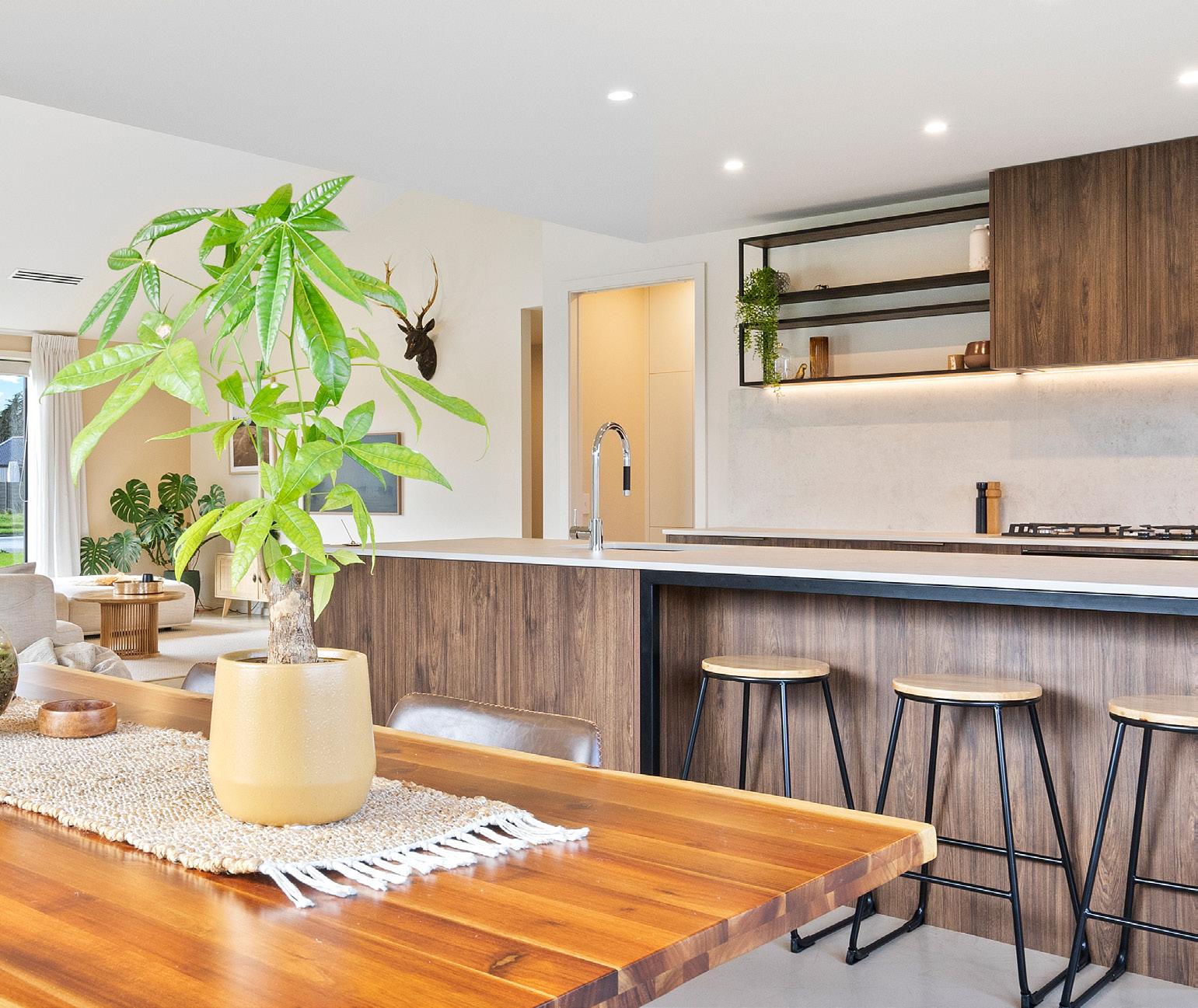 Textural twists and a split-level design elevate this H-shaped Kāpiti Coast show home into the realms of special. Pavilion style never looked so good.