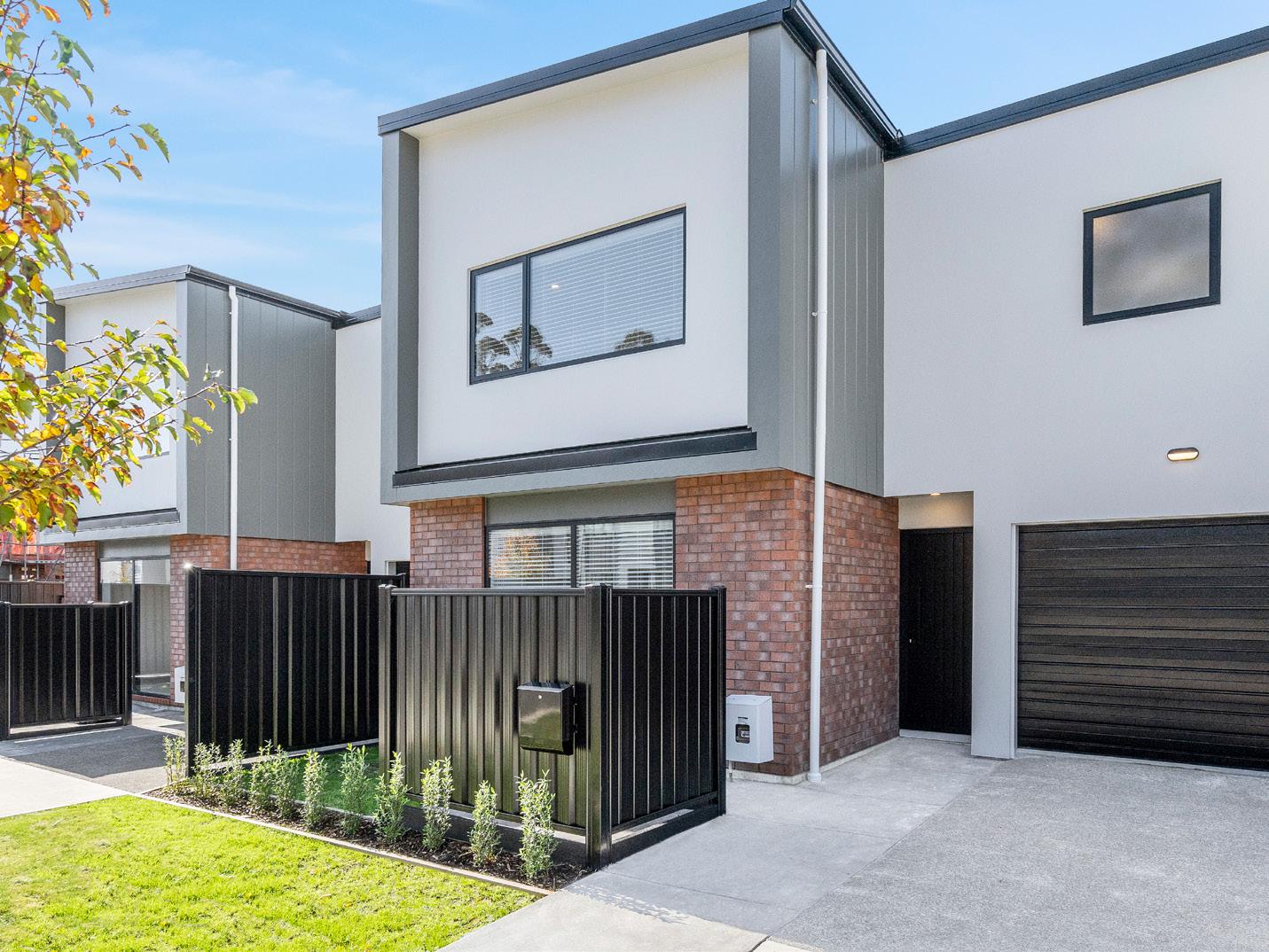These terrace homes have got smarts in spades. They’re chic in brick veneer, plaster and vertical grey weatherboard and with a striking cantilever. The highly tailored effect is amplified with a garage door, front door, joinery and fencing in dark hues — talk about street appeal.