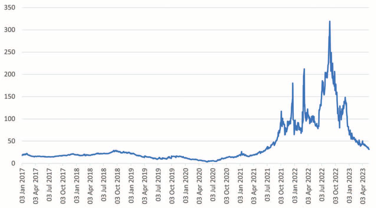 CfD mechanisms can provide protection against market volatility, a concern for investors given that prices in the Single Electricity Market fell to €23/MWh in May 2020, rose to €143/MWh in July 2021, and reached €402/MWh in September 2021 during a period of low wind which coincided with a number of gas plants being offline. CfD structures provide certainty, and benefit consumers in the right market conditions, by locking in a price per unit of energy generated over the course of the contract agreed. Since September 2021, market prices have risen above strike prices and CfD generators in Britain have been paying back to suppliers, reducing the green levy applied to British household electricity bills. Low