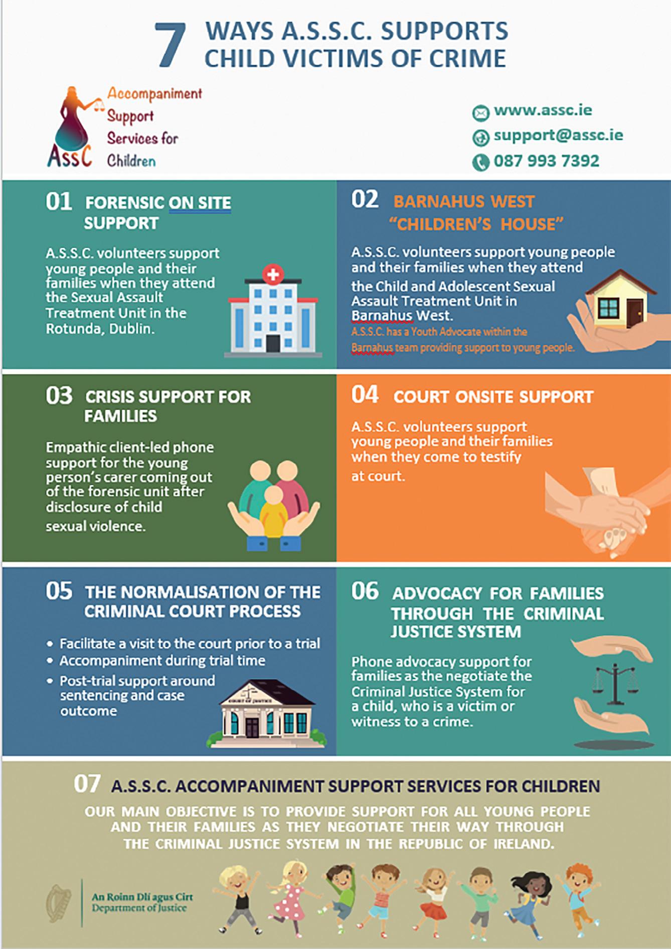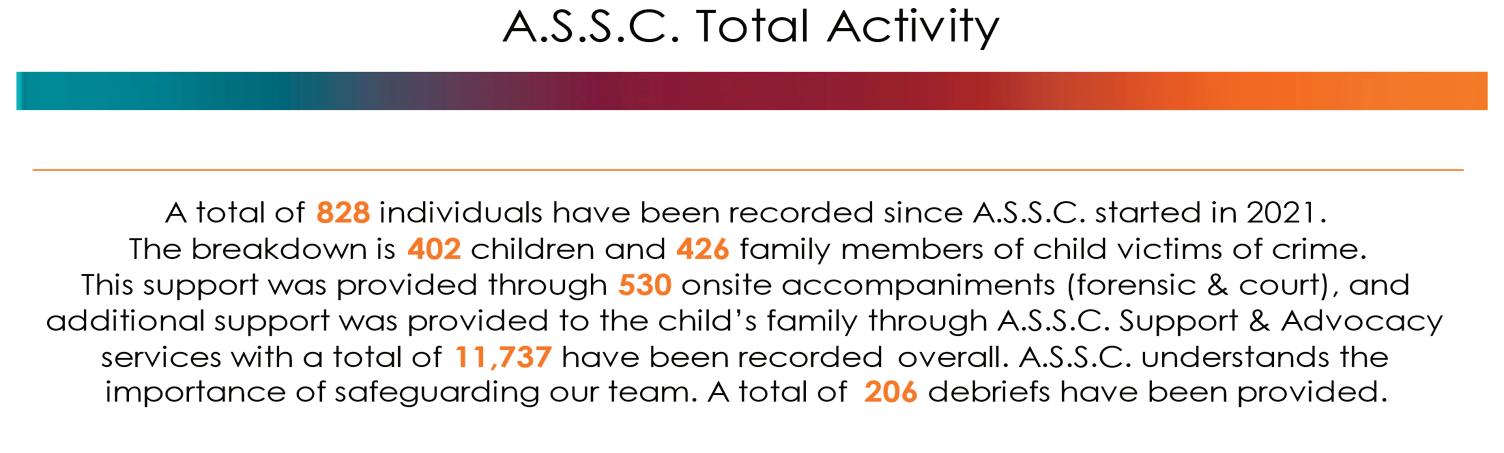 ASSC wishes to promote a cultural shift in the development of “child-friendly justice” by providing essential services for child victims of crime. ASSC looks forward to our ongoing partnership with the Department of Justice, and now the new statutory agency Cuan, in supporting