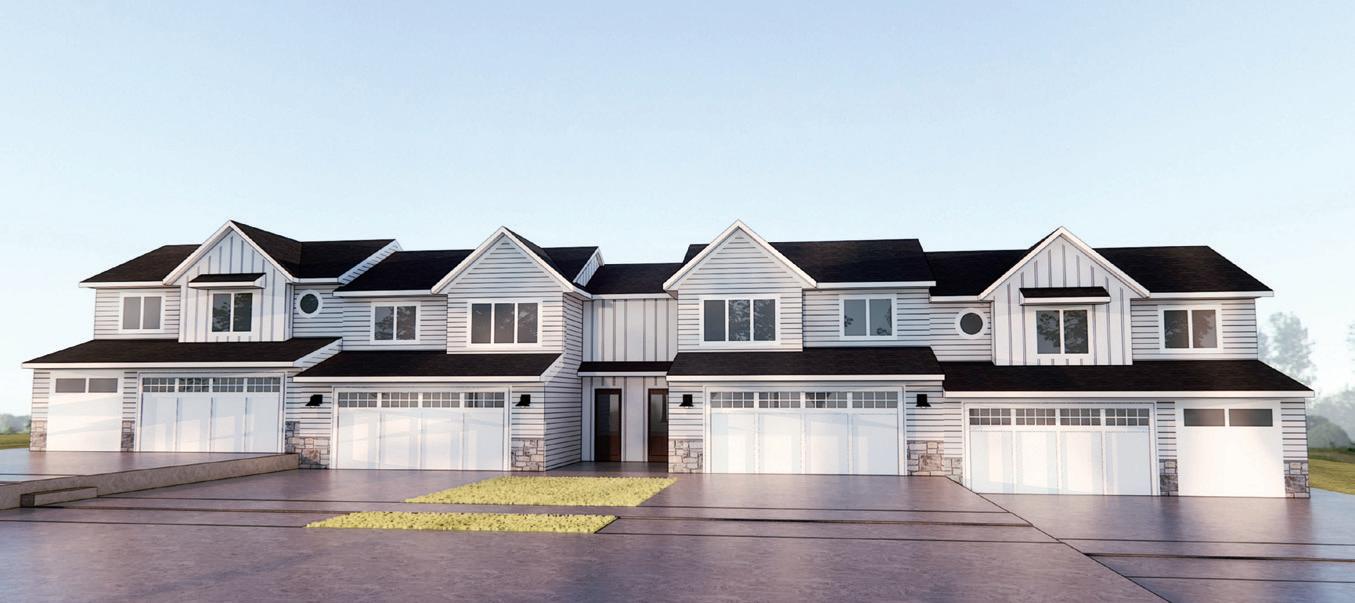 Rockwood Homes presents this beautifully designed twin-home with 2,659 finished sq. ft. on a desirable walk-out lot in NW Mandan. The open layout includes five bedrooms, 3 1/2 bathrooms, and a three-car garage. The kitchen blends modern style with natural warmth, featuring light wood and creamy white cabinetry, a quartz island, stone backsplash, sleek lighting, and pantry. Large windows brighten the living room and showcase a custom stone fireplace. Upstairs, the primary suite
