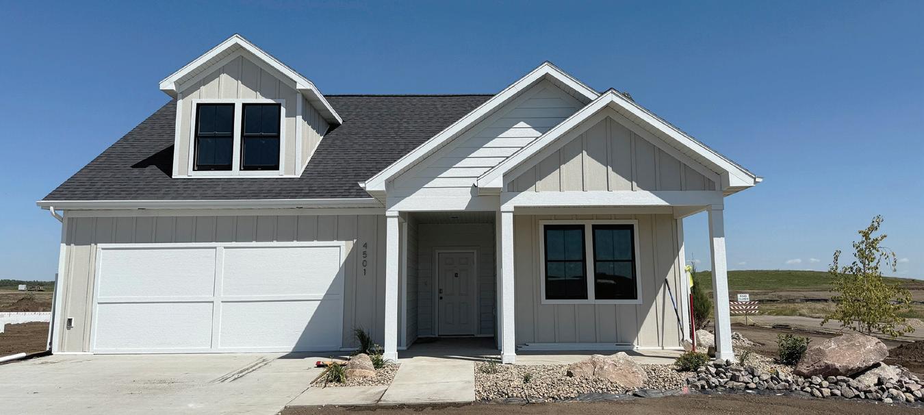 Welcome to the Spruce floor plan by Verity Homes, located in the desirable Clear Sky neighborhood in Bismarck. This stunning two-story home features four bedrooms, two and a half bathrooms, and an open-concept design perfect for modern living. All four bedrooms are conveniently located on the second floor, including a spacious primary suite with its own private bathroom. A bright and airy loft adds additional living space, enhanced by large windows that fill the home with natural light. The main floor boasts an inviting open layout, seamlessly connecting the kitchen, dining, and