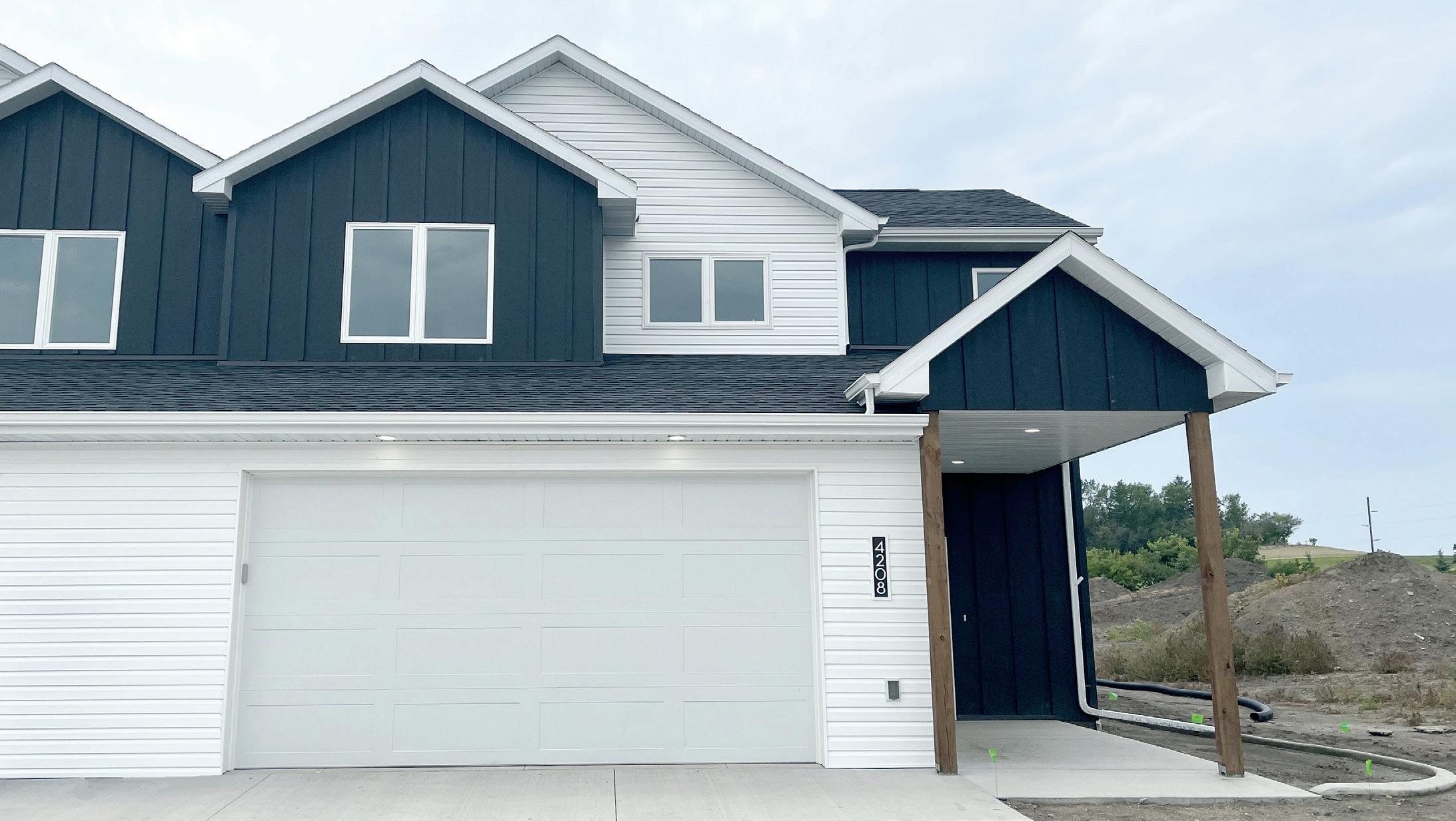 This twin home was just completed in our new Heritage Park 2nd Addition. This layout offers just the right amount of square footage on the main floor with overflow space on the upper level for guests. The entry opens to the large family room with ceiling that vaults into the 2nd story and is adjacent to the kitchen with custom alder cabinetry, dining room with trayed ceiling, 1/2 bath and mudroom. At the back of the home is a large covered stamped concrete patio and the master bedroom and bath with two sinks, custom tiled shower and jetted tub. The two-stall garage has an additional storage space perfect for hobbies and