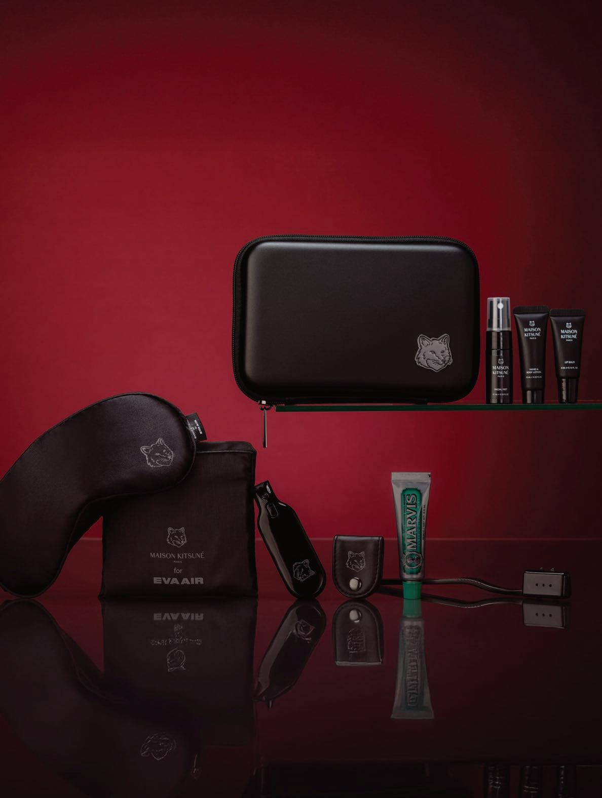 Passengers can choose contents from an amenity kit selection outlined in the inflight drinks menu.