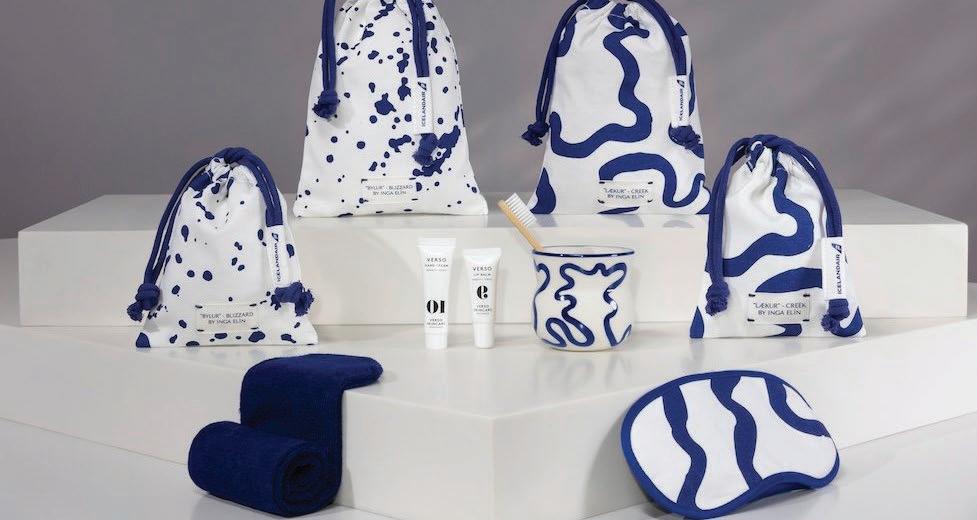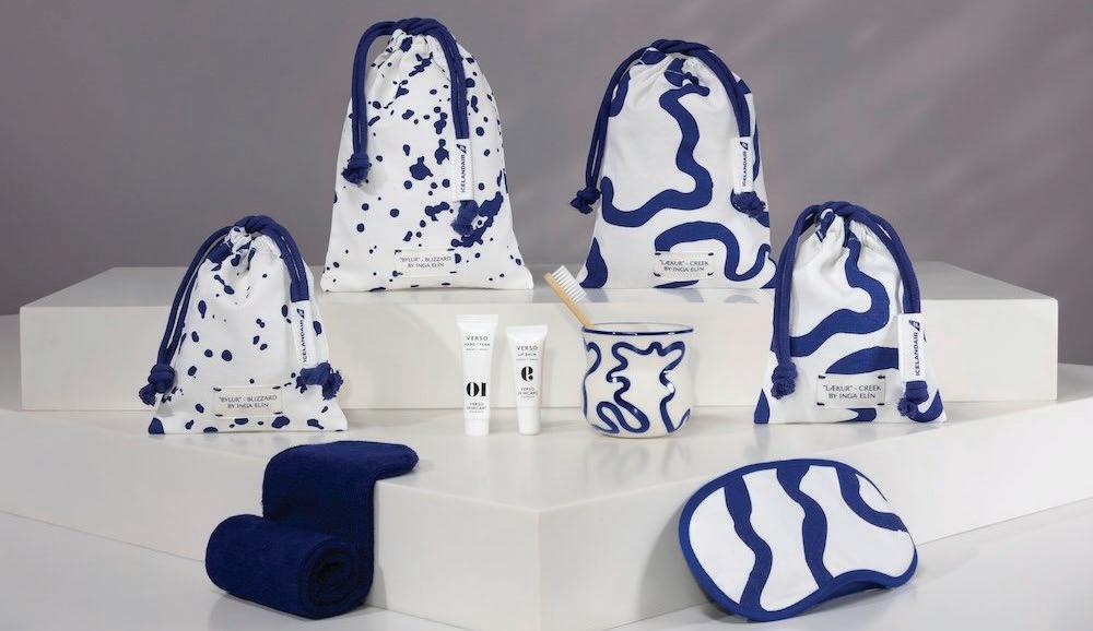 Icelandair is introducing on-demand Business class amenity kits available in more than 200 patterns, designed by Inga Elín, a local artist best known for the Veltibolli cup.