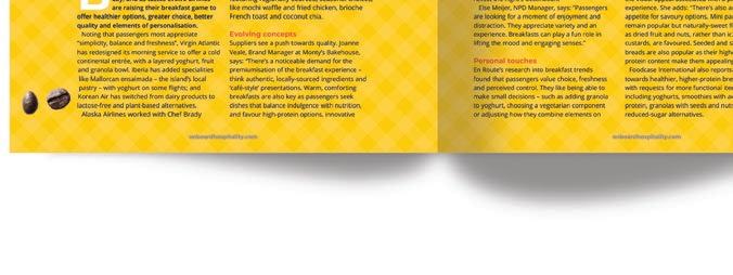 Transavia, as an example, highlights its bestselling meal deal at the beginning of its menu, combining three product groups – main meal, a drink and a snack. Laura Heijmann, the airline’s Buy-on-Board Manager/Inflight Sales Manager, says: “We present our buy-on-board options with a printed menu and it is the photo that really sells the product. We tested a more restaurantstyle menu without photos, but it didn’t work. Nor did digital menus. Descriptions should be as short as possible and crew announcements and upselling are also key sales drivers.