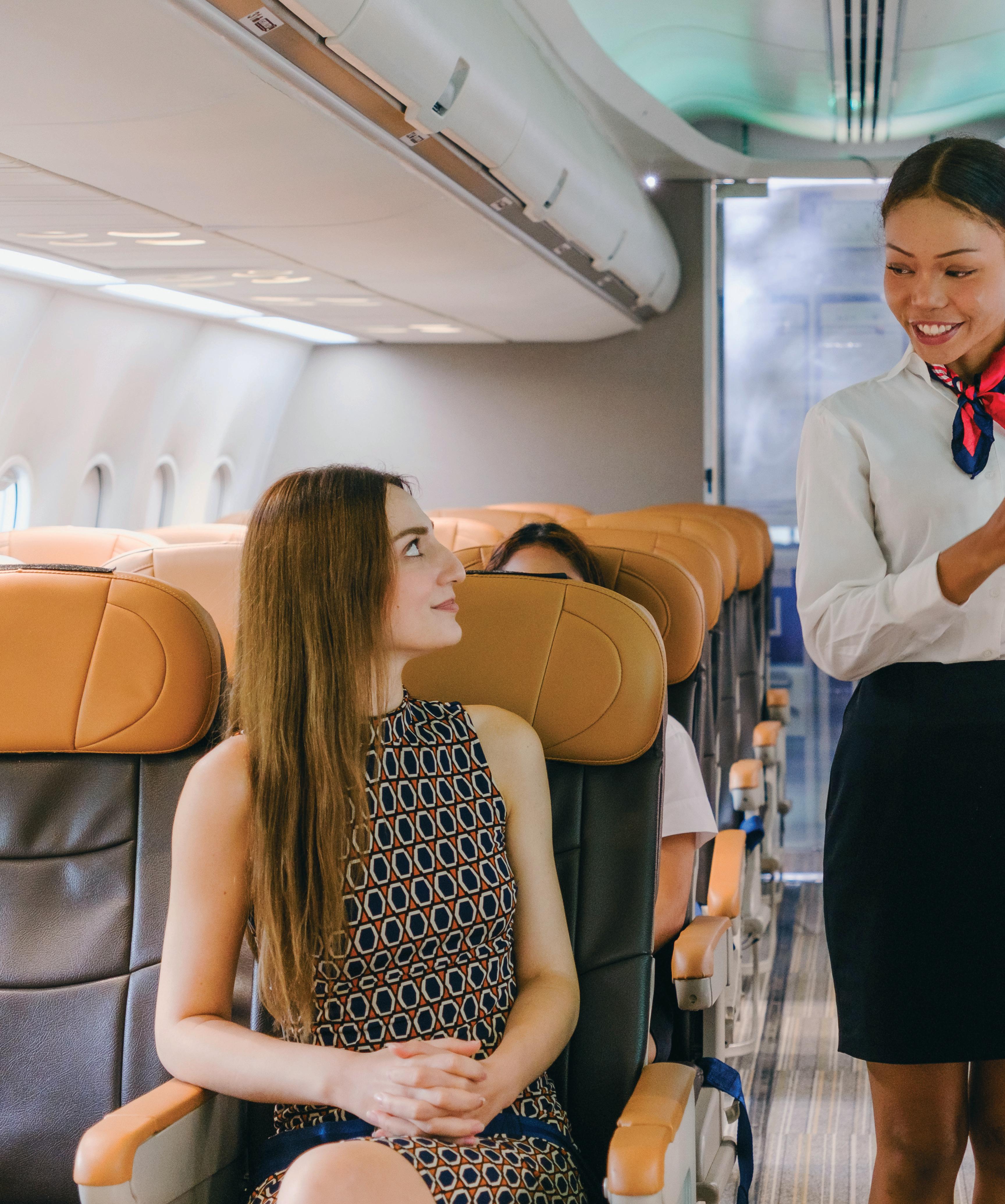 • Singapore Airlines is introducing an exclusive range of gourmet desserts for Premium Economy and Economy class passengers designed by guest chef Monica Galetti • Etihad is to deploy Viasat Amara across its entire widebody and narrowbody fleets to revolutionise the passenger experience, provide high-speed inflight connectivity for streaming, live TV, social media and browsing • Creative Nature has created a new, exclusive product, Light and Crunchy Thins, for Austrian Airlines, free from 14 allergens, vegan-friendly and made with natural superfoods • Air Astana has incorporated a Kazakh heritage motif into the design of its new Meridian Business class headset from Linstol •