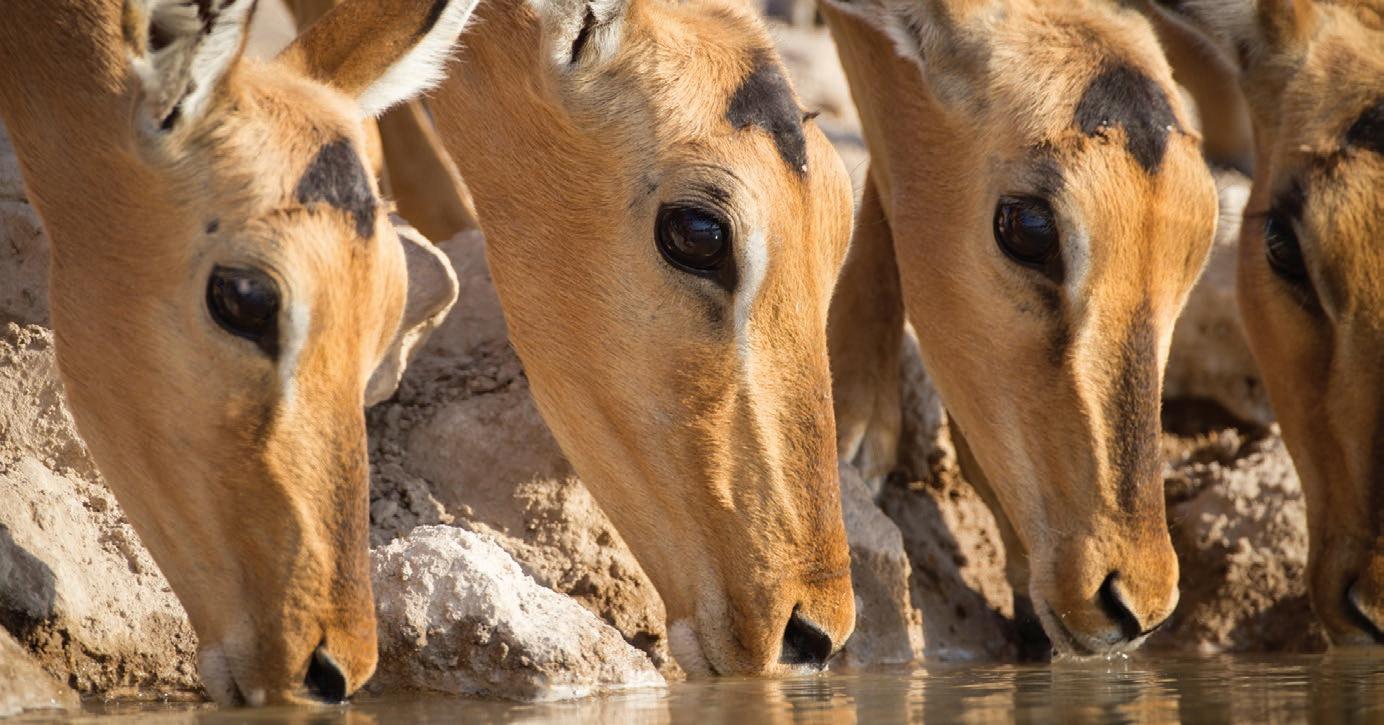 sCOrCheD trees Of the namib Desert sunset views frOm OnDuli riDge impala at the watering hOle in OngumaSeptember
