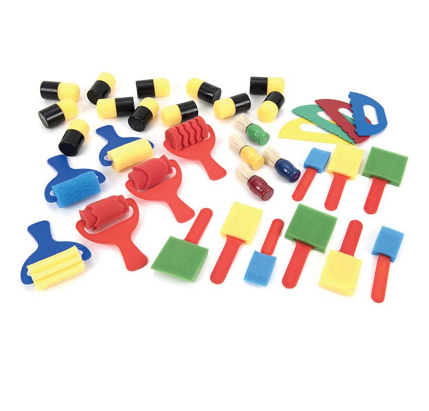 Komplekte yra keturi stumdukai, kurių ratai turi skirtingus atspaudus. Tiesiog pamerkite ratus į dažus ir leiskite vaikams piešti skirtingomis formomis.