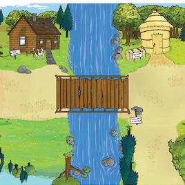 Vandens lelijų rinkinį sudaro salos ir plokščias vingiuotas tiltas, kuriuos galima tyrinėti.