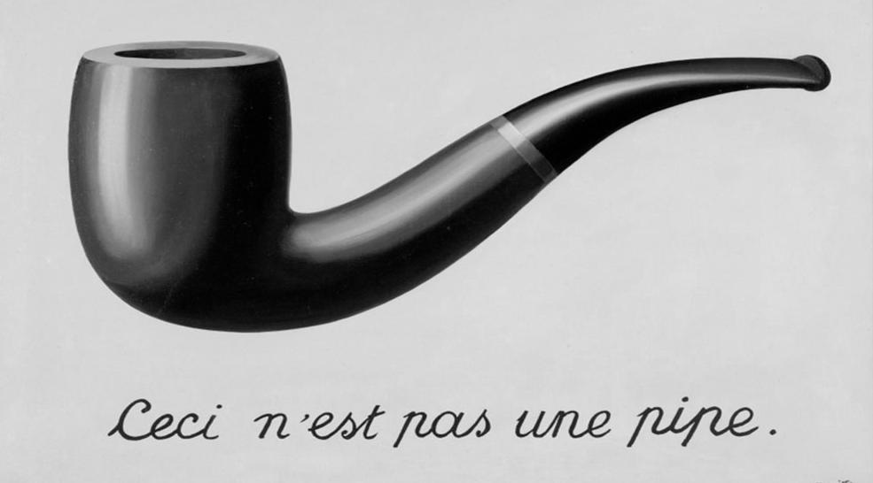 En 1929 René Magritte plasmaba la ima gen de una pipa en un lienzo en donde agregó la leyenda: “Ceci n’est pas une pipe”. Esto no es una pipa. Más allá de ne gar lo evidente, Magritte hacía una invita ción al espectador a pensar. En efecto no es una pipa, es la representación de una pipa. No se puede utilizar como tal, solo se puede observar.