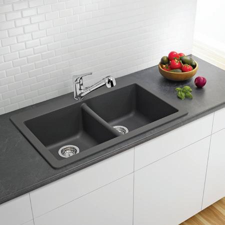 SIMPLE KITCHEN SINK Granite. Up to 4-hole installation. 25 L/W × 20,75 H × 8 P/D po/in.