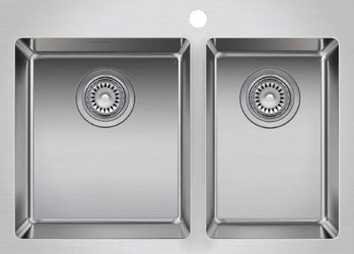 Acier inoxydable de calibre 18. Montage sur plan. Installation à 1 trou. Cuve double 60/40. DOUBLE KITCHEN SINK 18-gauge stainless steel. Drop-in installation. 1-hole installation.
