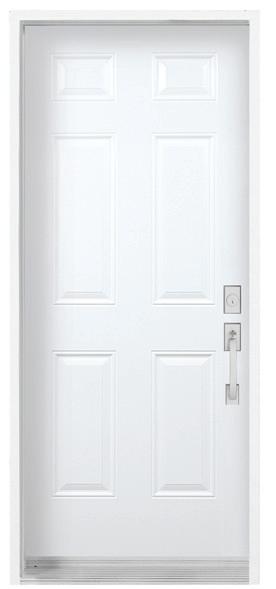 Availaible in 32 or 34 in. 1 1/4 x 7 1/4-in. frame, vinyl coating on the exterior. Double weatherstripping. Clear anodized threshold.