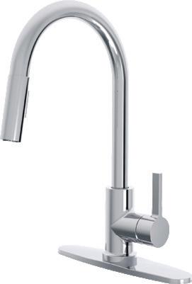 KITCHEN FAUCET Pull-down spout. 1- or 3-hole installation. Plate included.