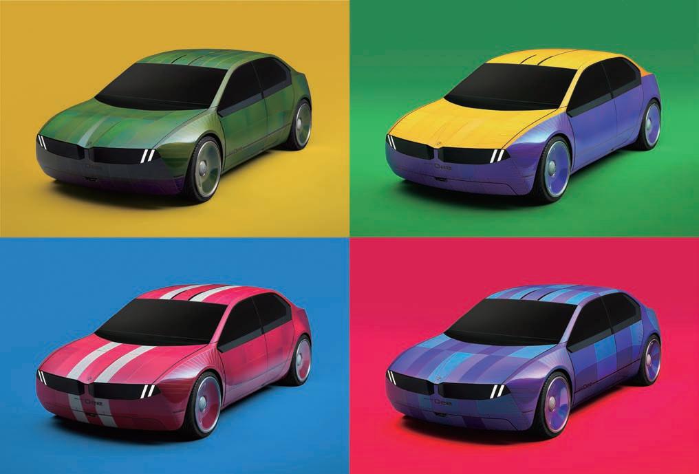 BMW i 비전 디는 디지털 경험과 BMW 브랜드 DNA 자체에 집중하기 위해 내 외관의 디자인적 요소가 최소화됐다. 먼저 차체 외부에는 BMW 브랜드의 핵