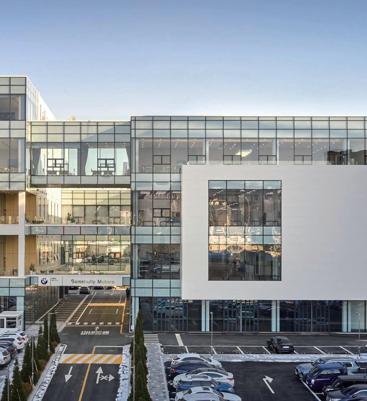군포시 당정동에 위치한 삼천리 모터스 BMW 군포 서비스센터는 약 12,434m2 면 적에 지상 5층, 지하 1층으로 이뤄진 경기 서남부권 최대 규모의 시설이다. 특히 방문 고객