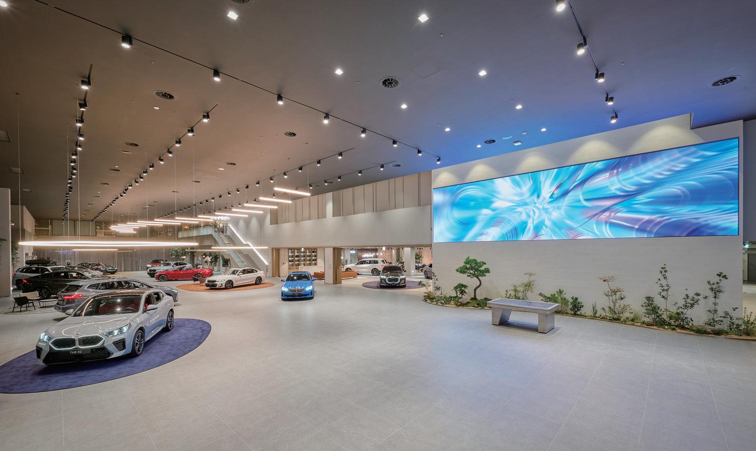 여 구성했다. 관람객은 하나의 동선으로 BMW와 MINI, BMW 모토라드의 최 신 차량들을 살펴볼 수 있다. 정형화된 형식으로 도열해 있던 전시 차량 역시 관람 동선을 따라 전시 모델을 자연스럽게 배치하고, 감성적인 경험까지 고 려해 조명 및 조경, 전시물 등으로 더욱 따뜻하고 편안한 분위기를 조성했다. 방문객과의 소통을 위한 오디토리움 형태의 공간 ‘비전 포럼(Vision Form)’도 새롭게 마련했다. 대형 LED 디스플레이와 조명, 음향 시스템, 그리고 계단식 좌석으로 구성된 비전 포럼은 BMW가 제시하는 미래 기술과 비전, 그리고 콘 셉트 카를 비롯한 차량에 대한 다양한 콘텐츠를 제공하는 공간이다.
