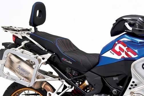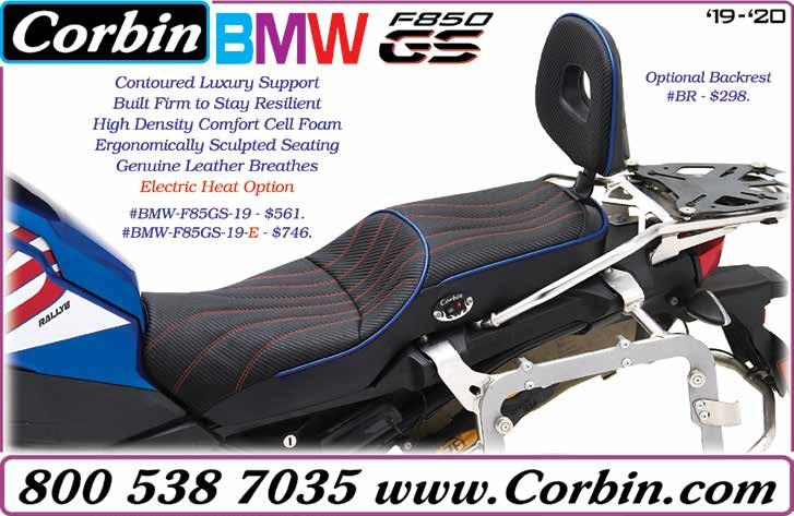 High-density Comfort Cell foam allows for a sleek profile yet provides a firm and supportive ride. Rider seating has been shaped to fit the curve of a rider’s body and provides better weight distribution, while the passenger seating area has been designed with a neutralized platform to prevent sliding forward in the saddle. For additional comfort and security, the Corbin saddle works with an optional removable passenger backrest. Using Corbin’s unique Fibertech basepan, the Corbin saddle is tailored to better fit the tank, tail section and sides. Corbin’s rigid base material not only fits the bike perfectly, but also provides a firm foundation to support the foam shape of the seat. The Corbin Canyon Dual Sport seat is just slightly lower than the standard BMW seat. Corbin saddles are also available with optional electric seat heaters, allowing both the rider and passenger seating platforms to heat up and maintain temperature automatically. The Corbin Canyon Dual Sport seat is proudly made in the U.S. For more information and pricing, visit corbin.com.