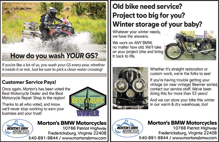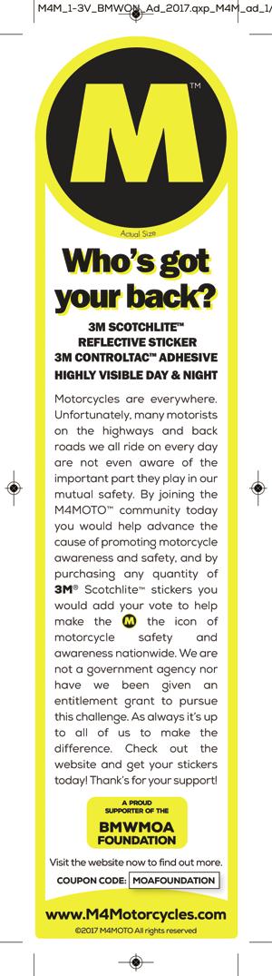 Opinions and positions stated in materials/articles herein are those of the authors and not by the fact of publication necessarily those of BMW MOA; publication of advertising material is not an endorsement by BMW MOA of the advertised product or service. The material is presented as information for the reader. BMW MOA does not perform independent research on submitted articles or advertising.