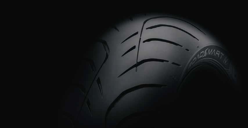 F E ATU R ES & B ENEFI T S The all-new Roadsmart IV delivers best-in-class handling, grip and mileage. • Compared to the Roadsmart III, the RSIV increases mileage by 23 percent in the front and 26 percent in the rear * • New tread patterns, construction, compounds, and profiles increase ride comfort, grip and mileage. • New technology allows the RSIV to maintain its high-performance throughout its lifespan • Front and rear compounds with Hi Silica X and Fine Carbon increase wet grip and stopping performance • New sidewall construction improves wet and dr y handling and comfort. • MT Multi-Tread™ technology in the rear tire uses a long-wearing compound in the center, and special lateral compounds on the shoulders for outstanding grip. * Testing performed by Dunlop in Japan on a 2018 Honda CB1300 SB with tire sizes 120/70ZR17 front and 180/55ZR17 rear on 40% public roads and 60% highways Mileage results may vary **Testing performed at the Dunlop proving grounds in Huntsville, AL in sizes 120/70ZR17 front, and 190/55ZR17 on a 2018 BMW K1600 GTL. Results may vary. Mileage and wet-braking tests performed at Dunlop proving grounds in Japan. More mileage and more grip—the all-new Roadsmart IV delivers more More mileage and more grip—the all-new Roadsmart IV delivers more of everything you want in a sport touring tire. With best-in-class mileage (26-percent more than the Roadsmart III), more nimble handling and more wet and dry grip than the Roadsmart III, the Roadsmart IV offers premium performance no other sport-touring tire can match.** Size Load/Speed Part Number Roadsmart IV Front 120/70ZR17 (58W) 45253301 120/70ZR18 (59W) 45253307 Roadsmart IV Rear 160/60ZR17 (69W) 45253302 170/60ZR17 (72W) 45253303 180/55ZR17 (73W) 45253304 190/50ZR17 (73W) 45253305 190/55ZR17 (75W) 45253306 RIDE DUNLOP @RIDEDUNLOP | DUNLOPMOTORCYCLETIRES.COM | © 2022 MORE PERFORMANCE, MORE MILES