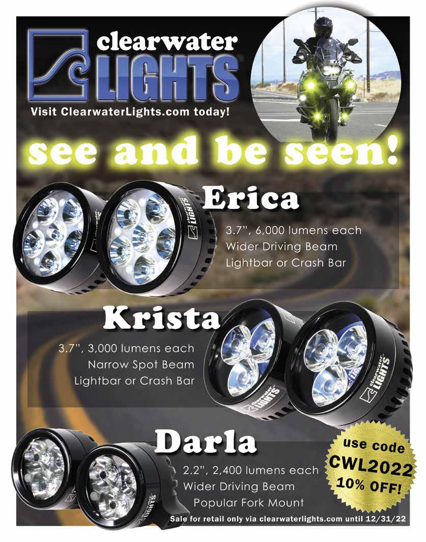 One sure fire method of reducing bike weight is to reduce luggage capacity. In Mark Barnes’ article “Light Makes Right” (Owners News, September 2022), he weighs all his gear and lists it. His packed luggage weighed in at 77 pounds. Applying Parkinson’s Law as a planning principal for weight reduction, Dr. Barnes could get rid of the top box and the tank bag, saving 17.5 pounds, and their contents saves him another 19.3 pounds. That is a total weight savings of 36.8 pounds or almost half of the total. And it gets rid of high-mounted weight making the bike much more wieldable.