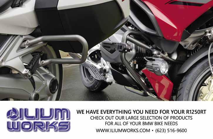 BMW OWNERS NEWS | January/February 2024 142 New gear, downloadable catalog updated website & more specials online! Darien Jacket Messenger Bags Triple Digit Glove Covers aero_bmwon_May23.indd 1 4' x 8' Pullout Drawer Under Deck MOTORCYCLE CARRIER 2 - 4 Wheel Air Ride Cargo Carrier for Bikes, Trikes, SXS, Golf Carts, Wheel Chairs • 2 Point Mount to Pickup, 5th Wheel, Travel Trailer, Motorhome, Car, Jeep, SUV • Drive On One Side to Load, Drive Off the Other Side to Unload with Pullout Self Storage 8' Ramps, 24"High • 12 V Power Loader Available in Lieu of Pullout Ramps • YouTube: Sturgis Gerry Piercey 30-40 videos and movies MOUNTAINMASTER.NET 623-451-7121 "DAY-LONG" TOURING SADDLES By Russell Support Suspension System 4917 Shasta Dam Blvd. Shasta Lake, CA 96019 (800) 432-9566 info@day-long.com www.day-long.com Help us help our vets. DONATE TODAY. MOTORELIEF.ORG 5-day Relief Rides on BMW GS ADVENTURE BIKES at no cost to participants. Have a bike you no longer need? DONATE A BIKE of any make or model. Motorcycle Relief Project (MRP) HELPS VETERANS with Post Traumatic Stress Disorder (PTSD) DECOMPRESS, VETERANS RECOVERY. connect with other and take meaningful steps toward GET UNSTUCK,