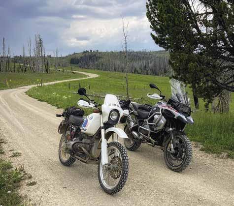 Top Left, Scott Hecker (224075) photographed his R 80 G/S along with a buddy's R 1250 GS Adventure along a gravel road near Black Butte, the highest peak in the Gravelly Mountain Range in Montana.