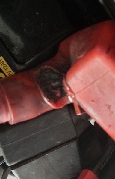below the bar, the battery was still securely strapped into position, the bar was not bent or deformed in any way so it remains a mystery. If anyone has a bright idea (pun intended) please let me know and put me to rest. The Guru of all things electric, Les Fitzpatrick, told me that he held concerns that such an occurrence was a possibility so insulates the metal bar and puts additional rubber under the bar on his GSA. This little wood duck will do likewise henceforth and