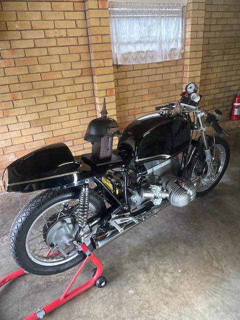 the centre frame bars and the motor; and finally, but not lastly, I wanted to retain the R75/6 cover, with the badging, over the motor.