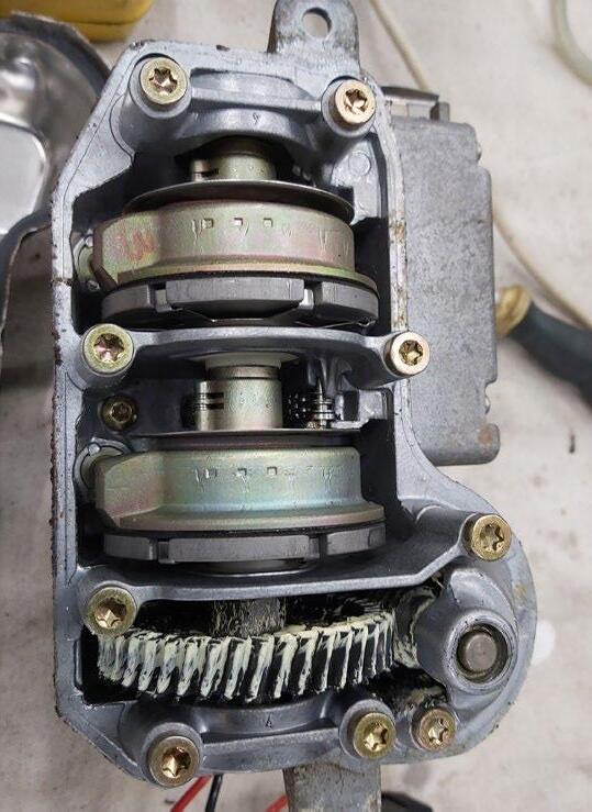 the bevel drive gear activating the pistons were well greased and working perfectly. It is quite a simple system and the mechanics were all operating as designed. All reassembled and reinstalled. The ABS wheel sensors were reshimmed to specified clearance.
