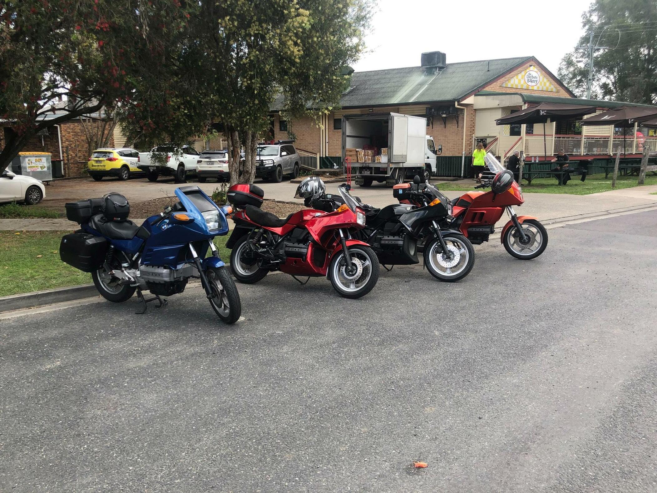 I went for a jaunt on the K100RS4v to the postponed due to rain, Ruptured Budgie Rally earlier this month and didn’t quite get there. The Mount Lindsay Highway, in all its glory, destroyed my rear shockie. It’s still holding oil, but it shortened itself by a couple of inches, which left my son and I stranded in Tenterfield. The wonders of air travel mean that you can only get a bus out of Tenterfield every Wednesday, and there’s no car hire. So don’t break down in Tenterfield because the RACQ can’t get you home. Pack a spare bike.