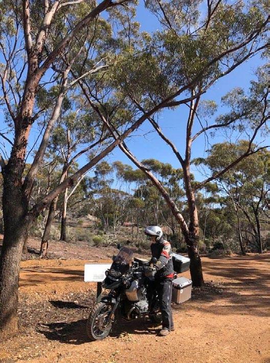 Speed was of the essence, so with a last look at every possible place where a backpack could hide having fallen from a pannier, we easterlyed once again. No records exist of the speeds, but we arrived at Darlington Point just when the headlights were moving from niceto-have to essential. The last 60 km were about finding a vehicle that wouldn’t even flinch as it punted a roo well off the carriageway and staying right up its gluteus’s. Thanks to the big B double from me, and the big 4WD from Cindy. Fortunately, the excellent Narrandera accommodation and RSL dining across the road didn’t care about arrivals 3 hours later than communicated when making the bookings.