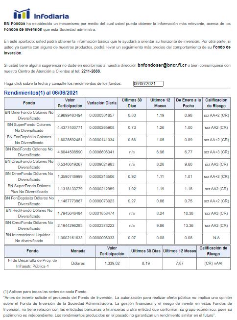 Diariamente en el sitio Web se publican los valores de participación: www.bnFondos.com